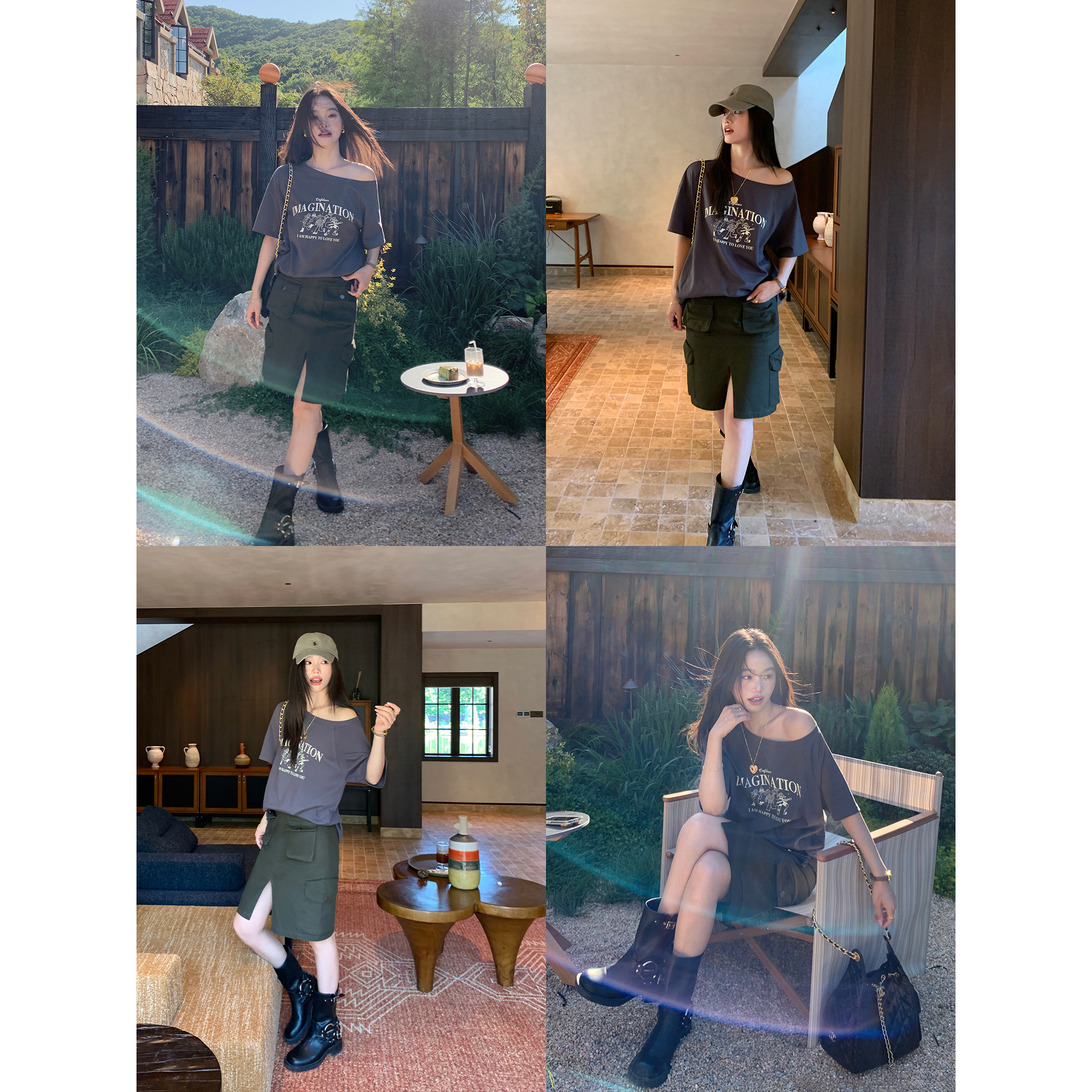 半身裙女设计感小众开叉直筒裙子 多口袋工装 pusumede 时髦天赋