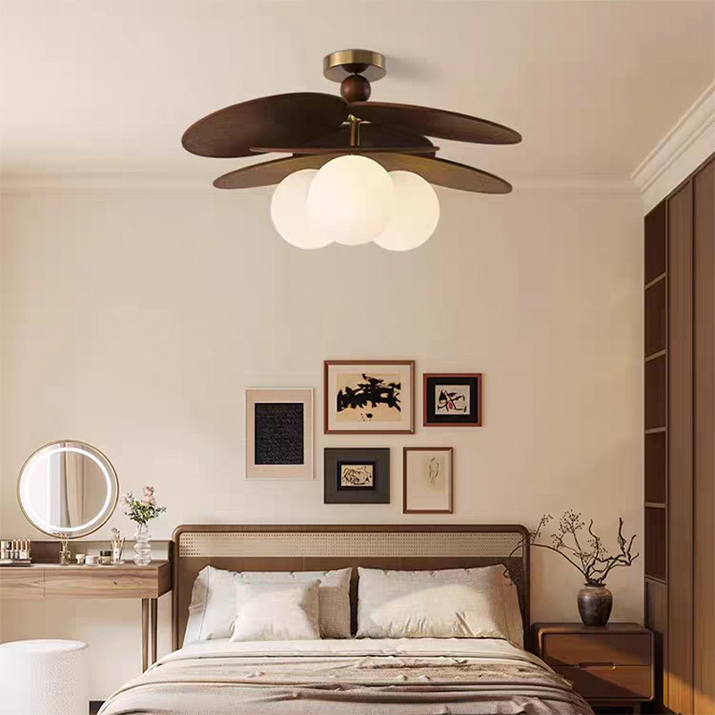 卧室风扇灯吸顶护眼静音简约书房餐厅家用小风扇吊灯中古风新中式