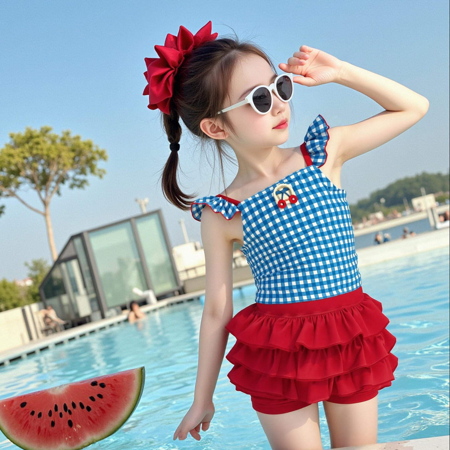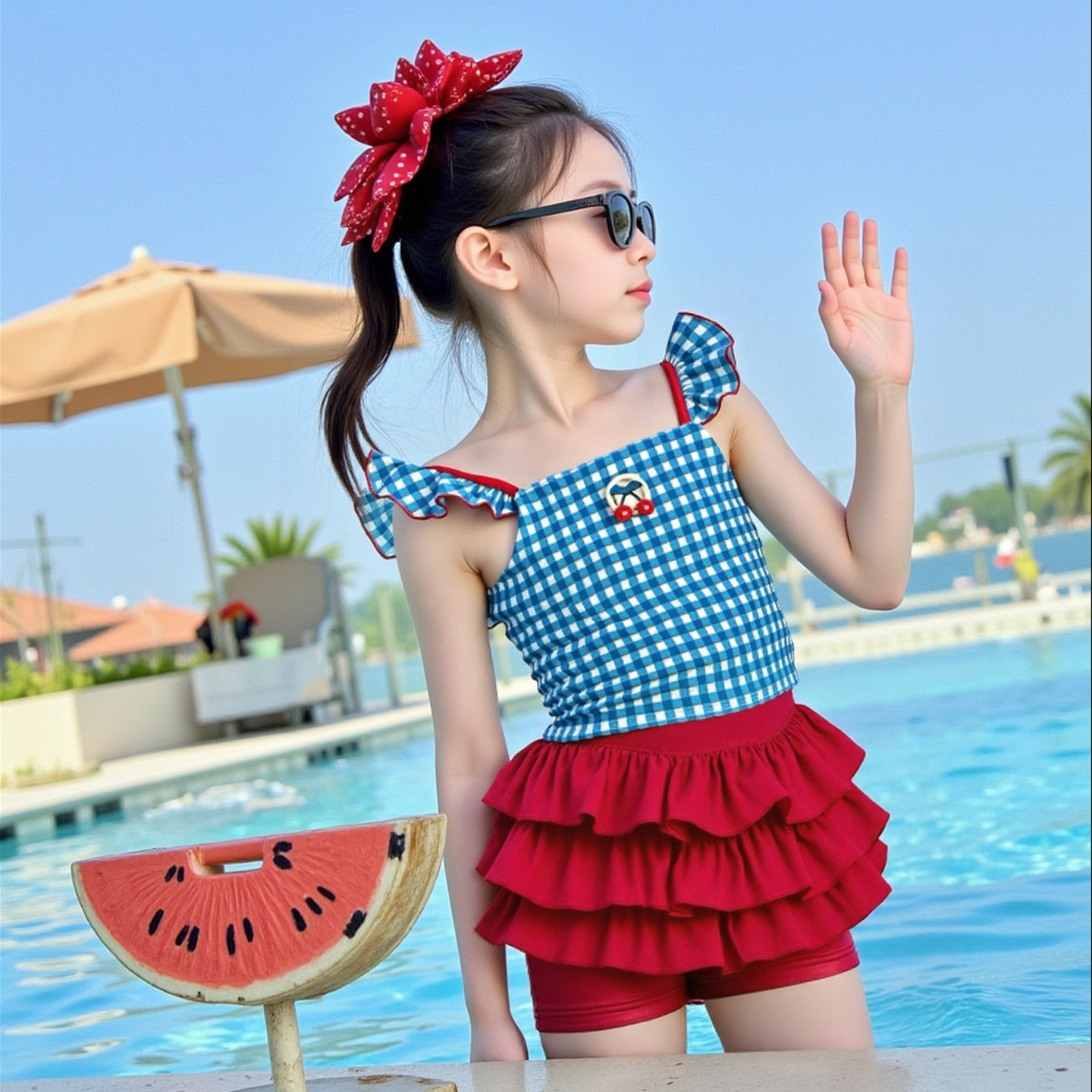 连体游泳衣 夏季 女童高颜值泳衣2025新款 中大童12岁洋气公主风泳装