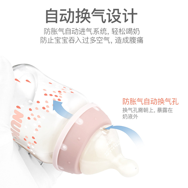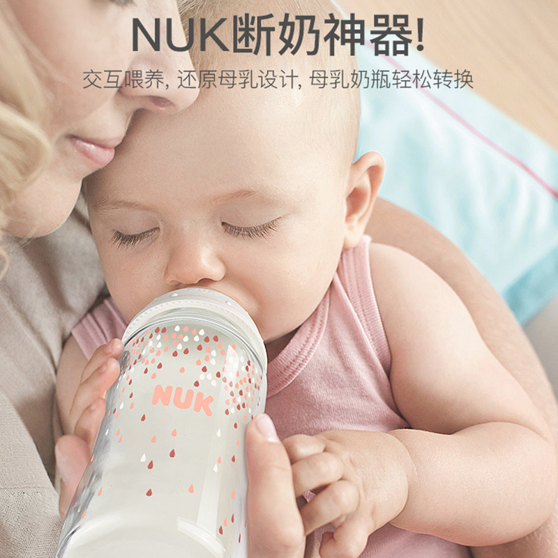 德国NUK宽口径玻璃奶瓶新生婴儿宝宝奶瓶防胀气硅胶乳胶奶嘴240ml