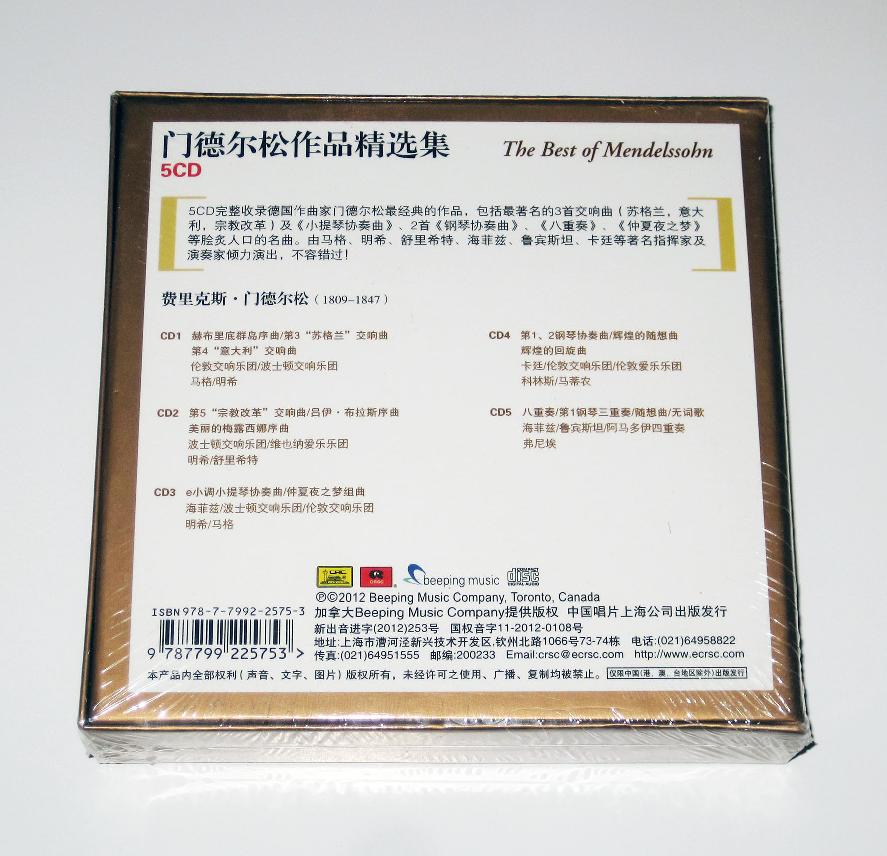 明希 门德尔松作品精选集5CD古典音乐 马格等大师演奏 包邮 正版
