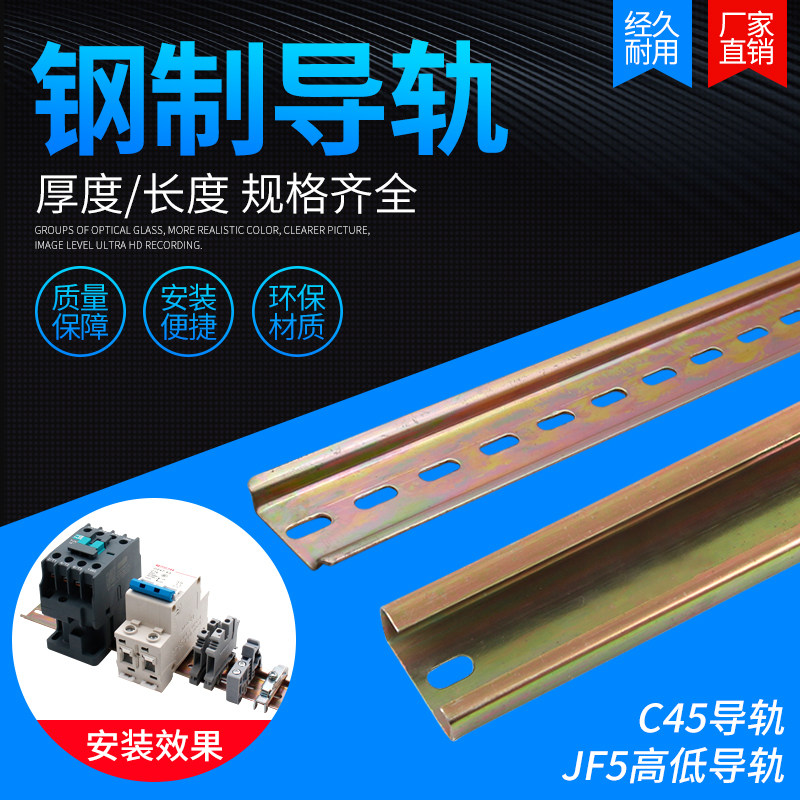 c45铁导轨条空开卡轨条电气断路器dz47继电器接线安装 轨道条35mm