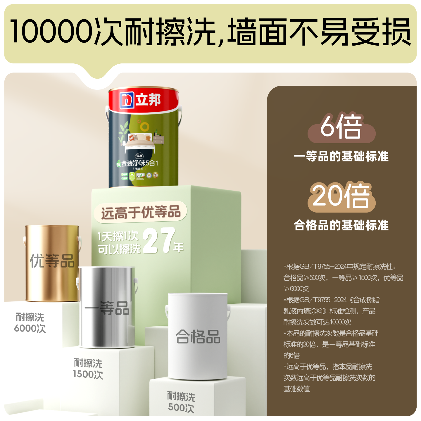 立邦金装 净味五合一乳胶漆内墙乳胶漆室内家用自刷涂料油漆面漆