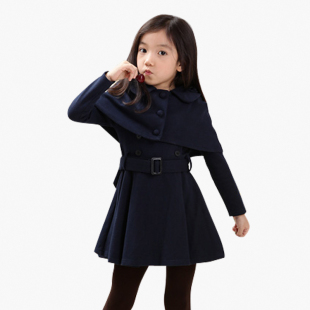 套装 新款 春秋儿童连衣裙子长袖 女童春装 风衣秋裙披肩呢子裙子 童装