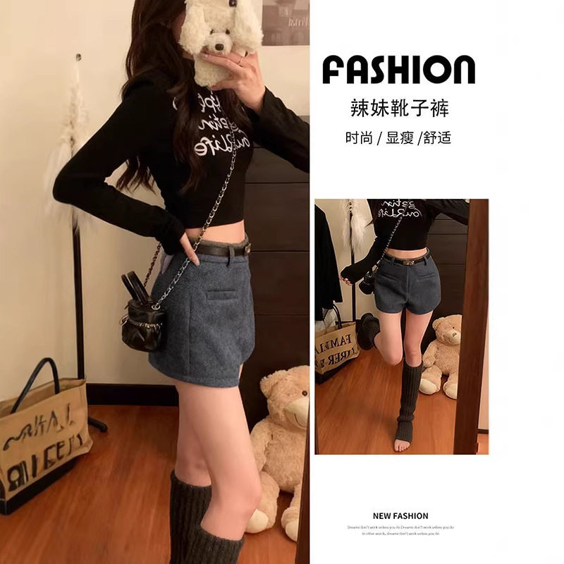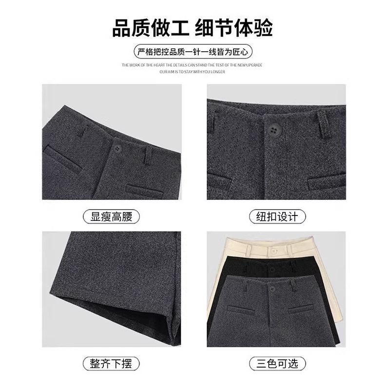 通勤加厚休闲阔腿靴裤 韩版 宽松a字修身 子女秋冬2025新款 毛呢短裤