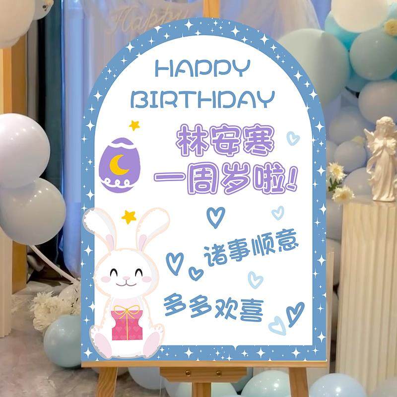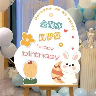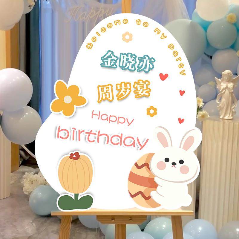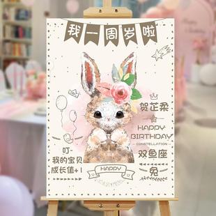 兔宝宝儿童百天满月周岁宴生日装 饰布置照片迎宾牌kt板定制展示架