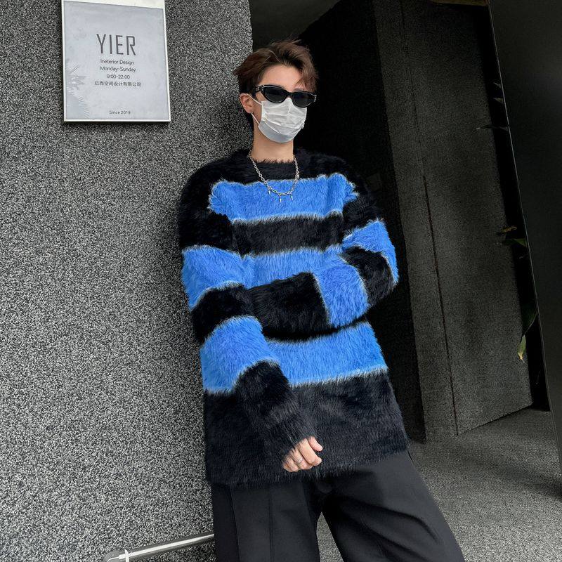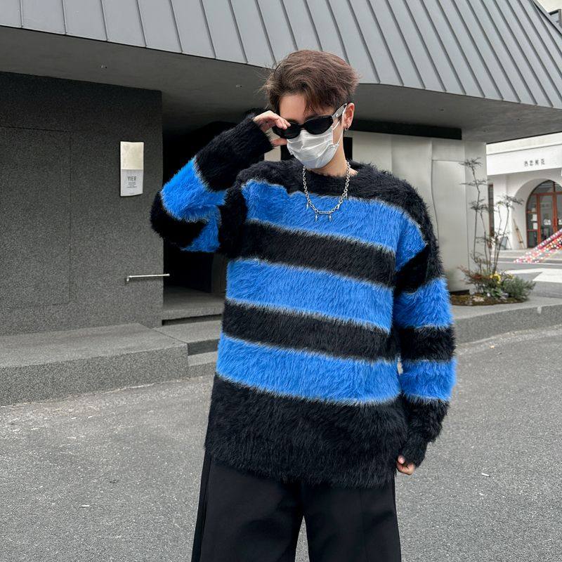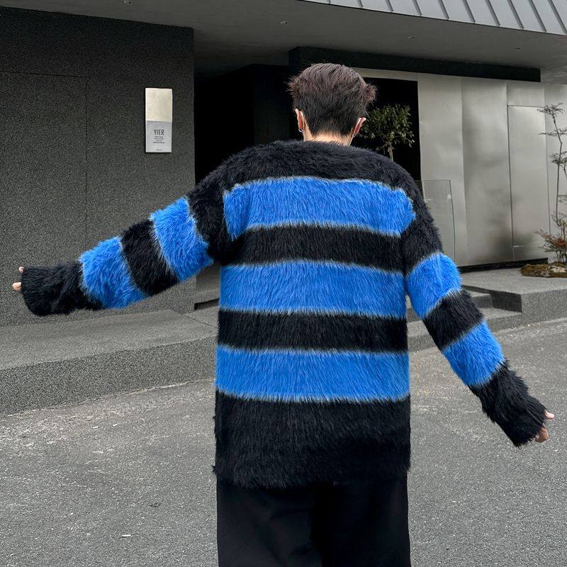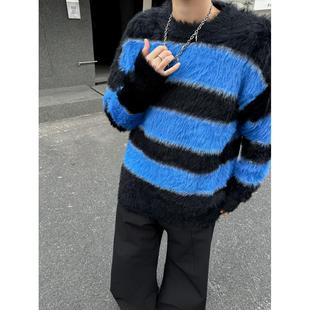 加厚套头懦弱慵懒风毛衣外套 针织衫 2025冬装 条纹海马毛宽松男士