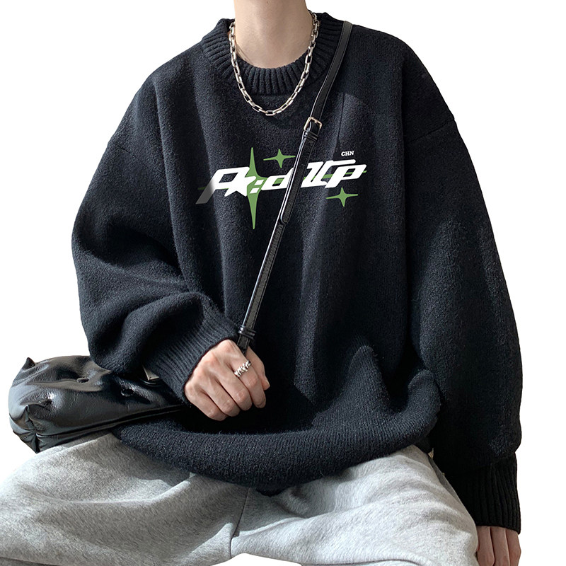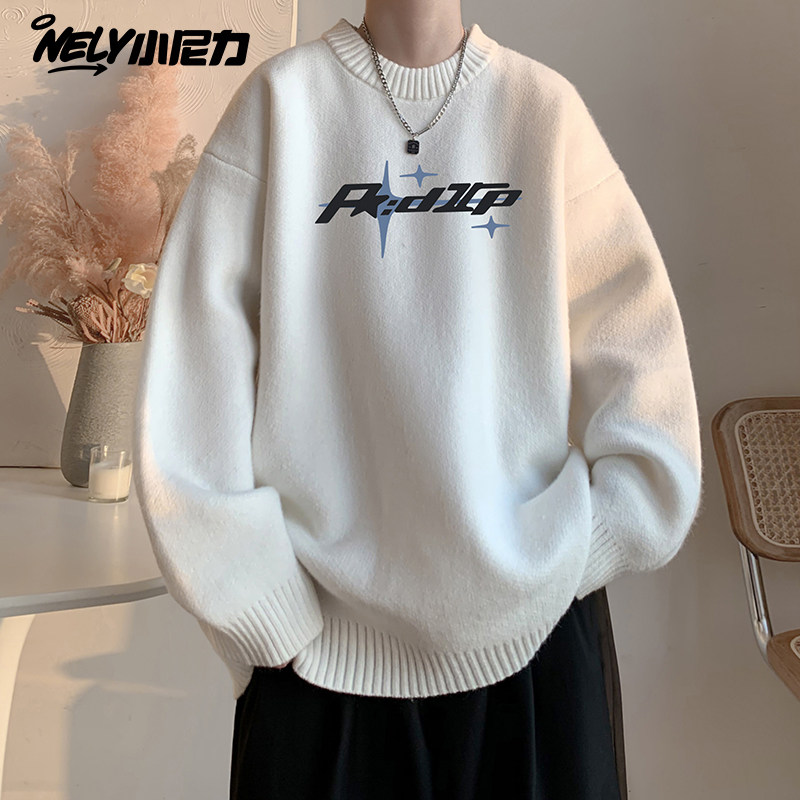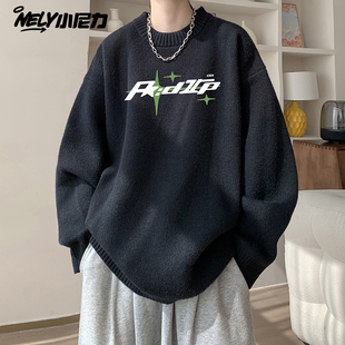 高街宽松针织衫 vintage休闲打底衫 美式 潮牌慵懒风情侣毛衣男冬季
