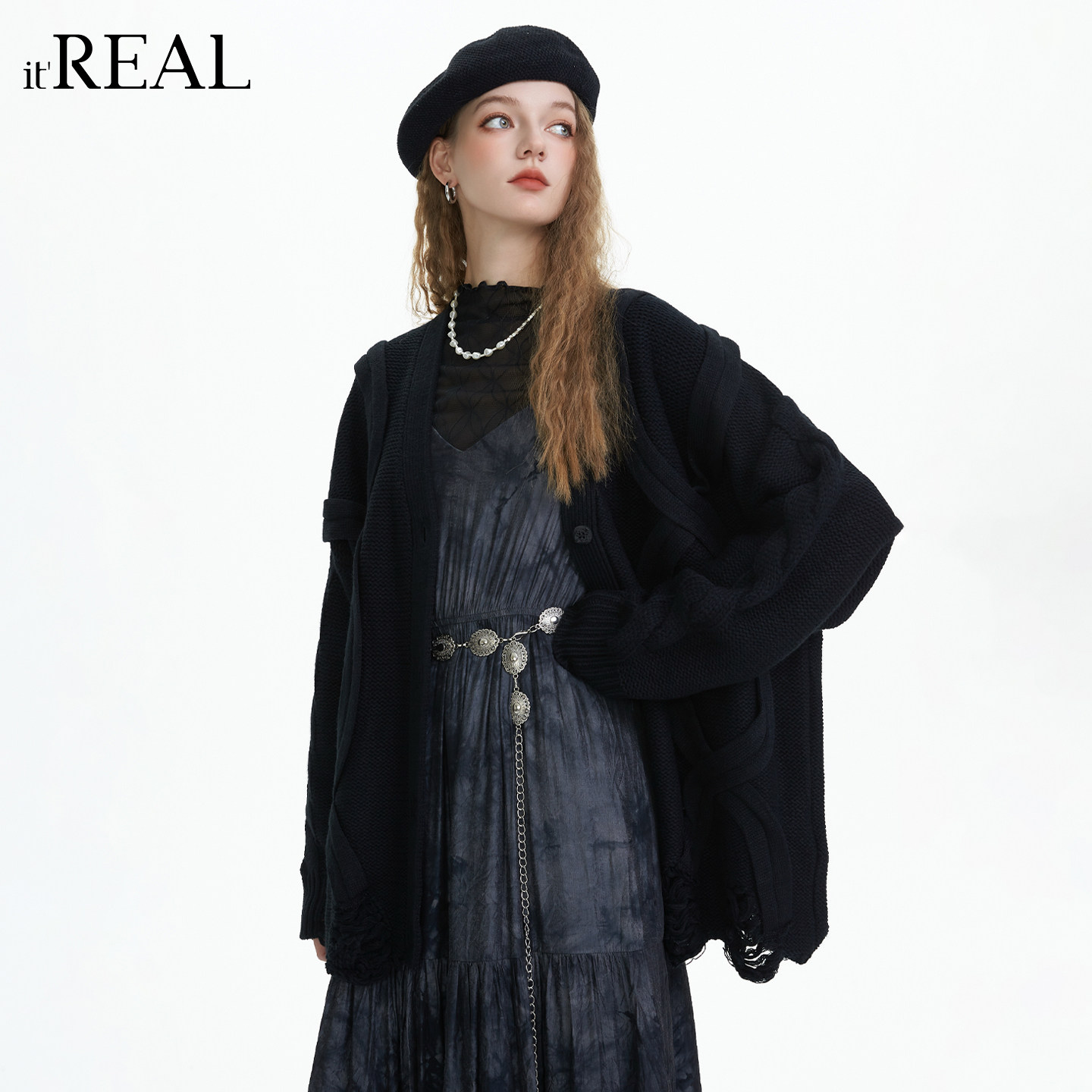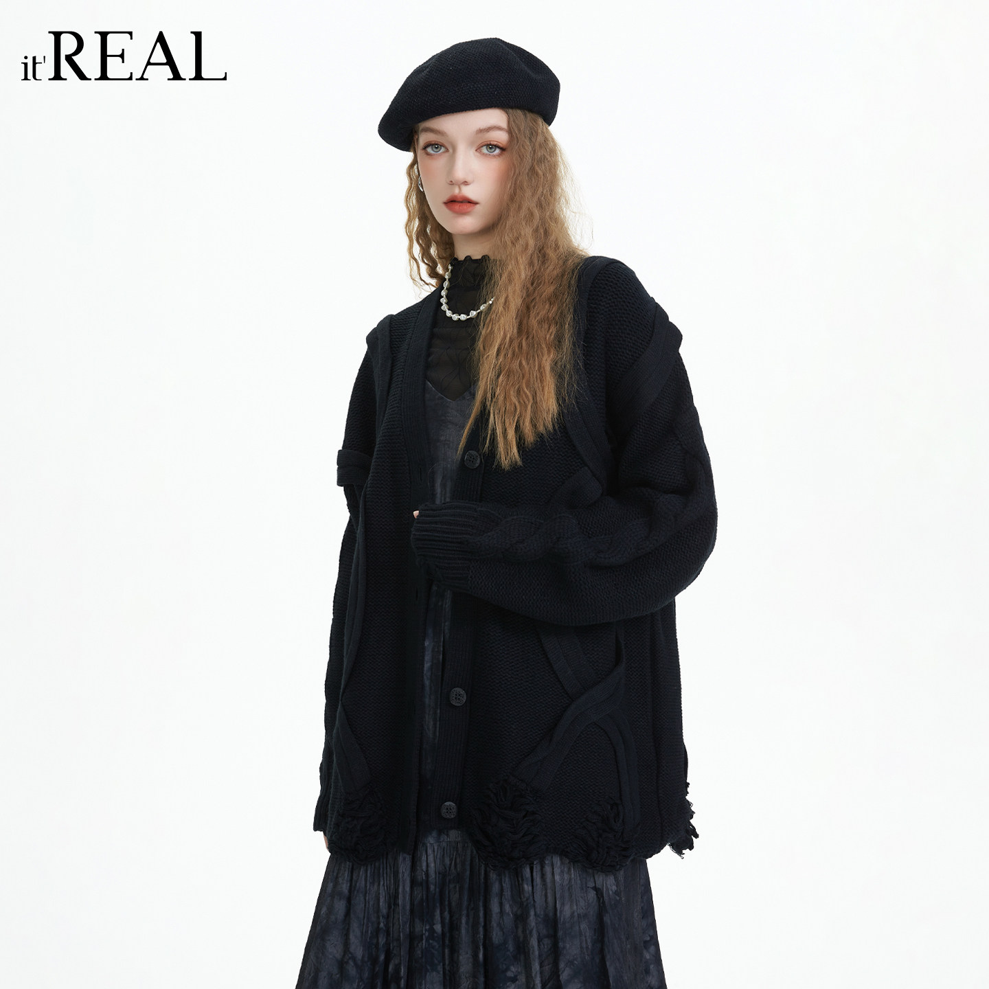 针织外套上衣女装 慵懒松弛感长袖 新款 real瑞尔春季