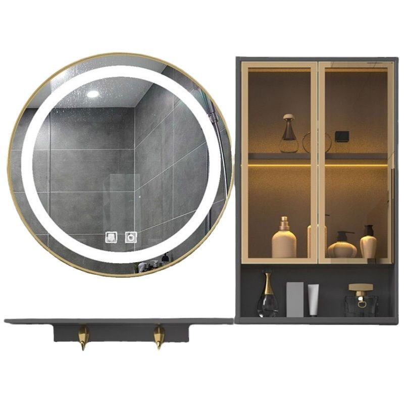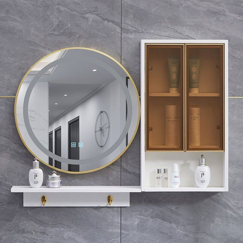 卫生间圆形镜子现代轻奢智能镜柜单独壁挂浴室挂墙式 置物架带灯柜