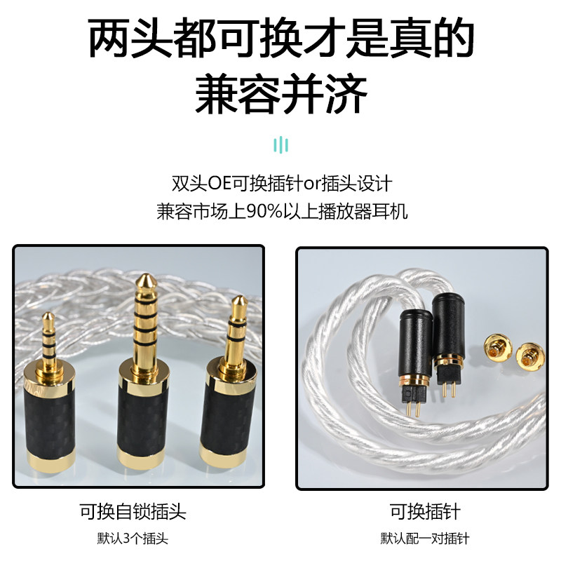 N5005 0.78耳机升级线 终章KZ 600 900 森海IE200 Aria 兴戈 MMCX 单晶铜纯银三合一4.4 ie80 2.5适用水月雨