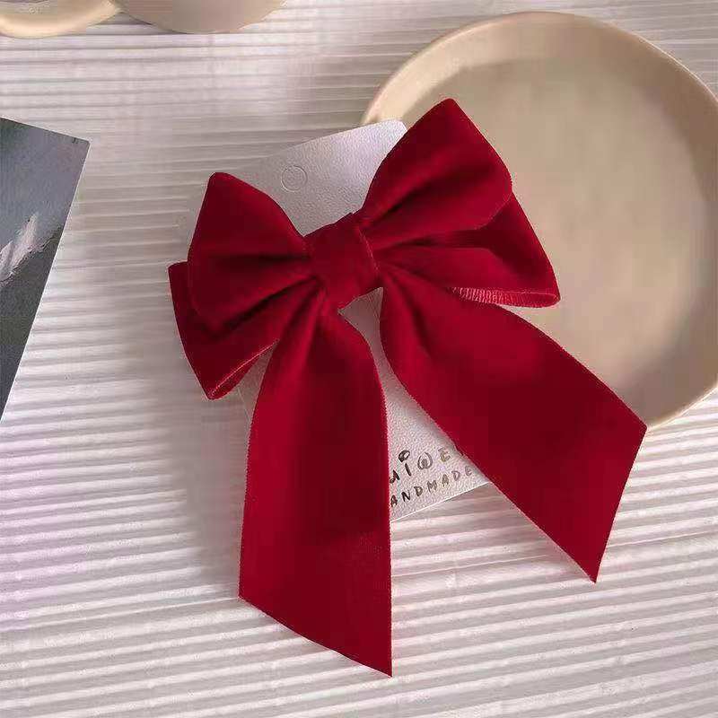 秋冬新款 婚礼配饰 红丝绒燕尾蝴蝶结发饰高档气质百搭头饰发夹中式