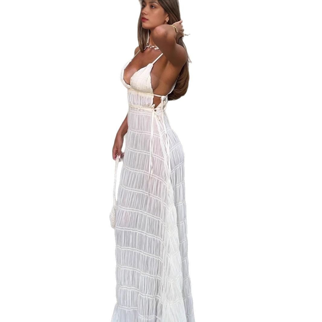 strapless mesh lace vest dress夏挂脖绑带性感露背蕾丝 Sexy