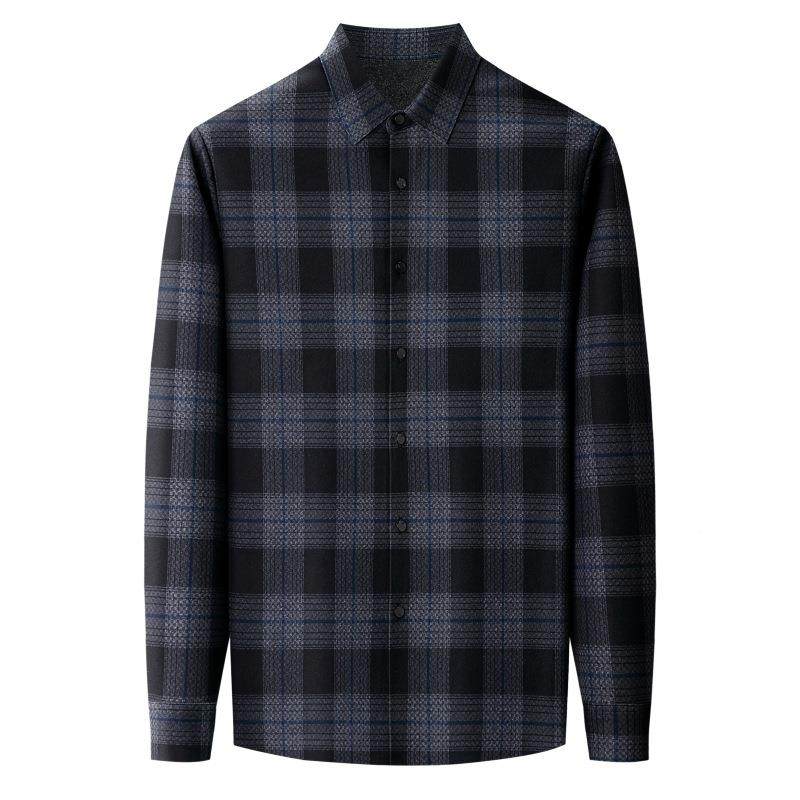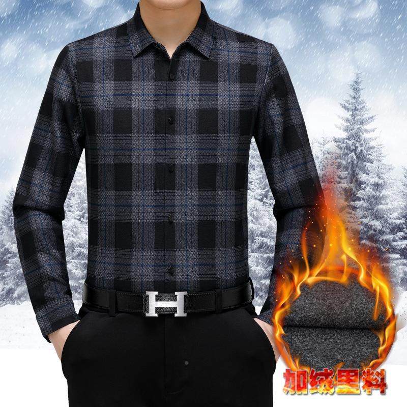 中年山羊23W82 牌羊品绒保长暧衬衫 加绒加厚格子年冬季 袖 TB男绒 式