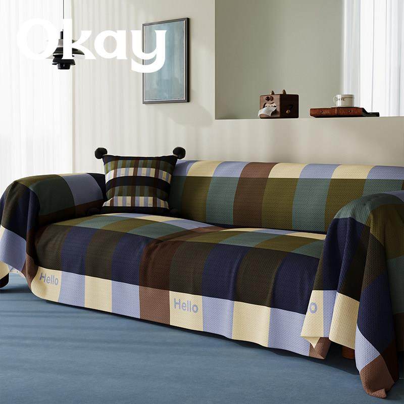 okay格子条纹 通用ins韩系全包沙发盖布套罩巾简约百搭 沙发巾四季