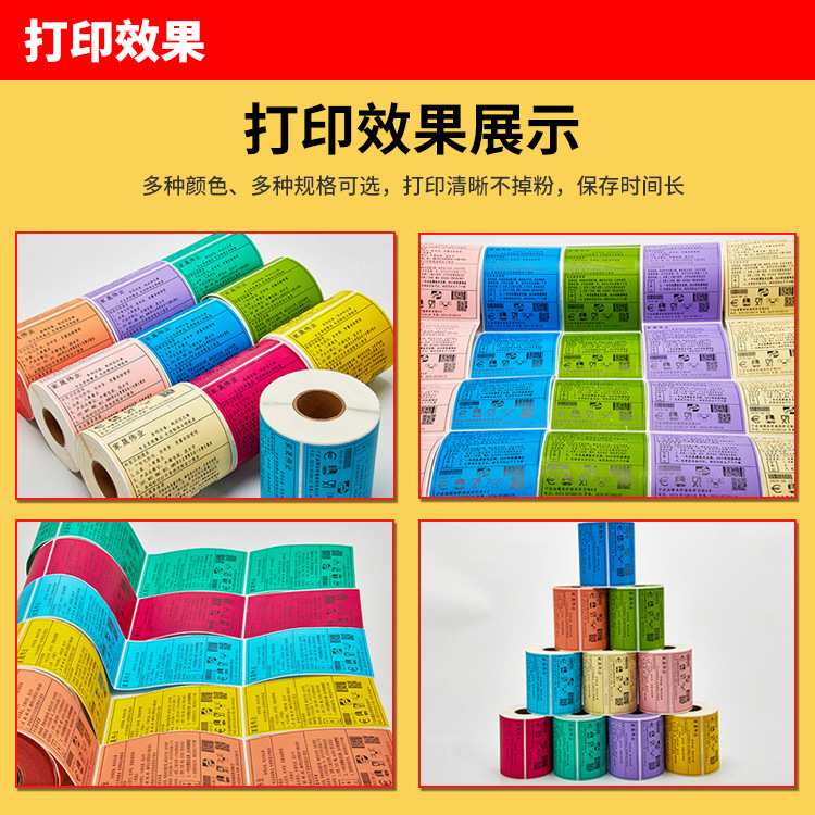 彩色标签纸1009080铜板标签50彩色30不干胶贴纸40打印7060