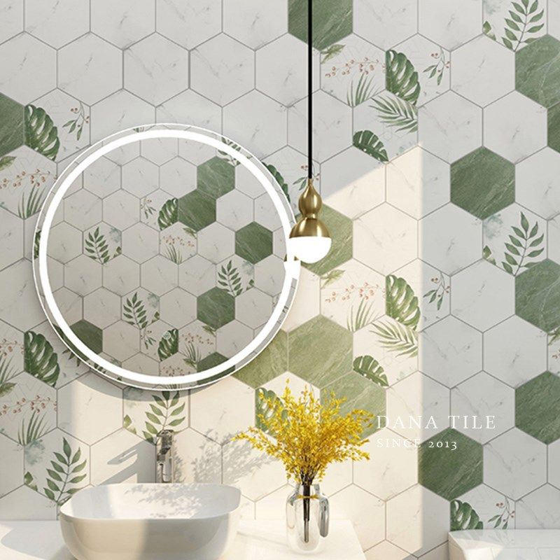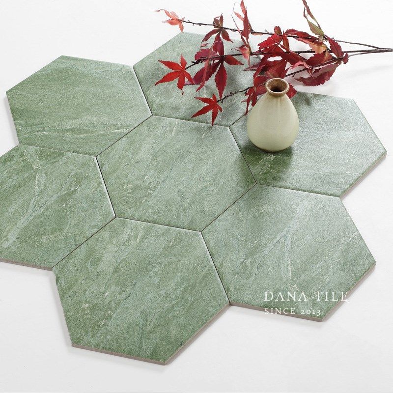 戴纳 绿色植物j六角砖六边形地砖阳台庭院花砖厨房卫生间复古瓷砖