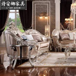 具别布艺 12墅3简欧家实木皮艺法83304式 欧式 沙发组合厅奢华整客装