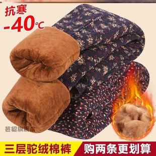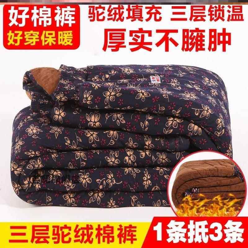 中老年驼绒棉裤 加绒保暖老人三层加厚奶奶宽松居家 男女高腰冬季
