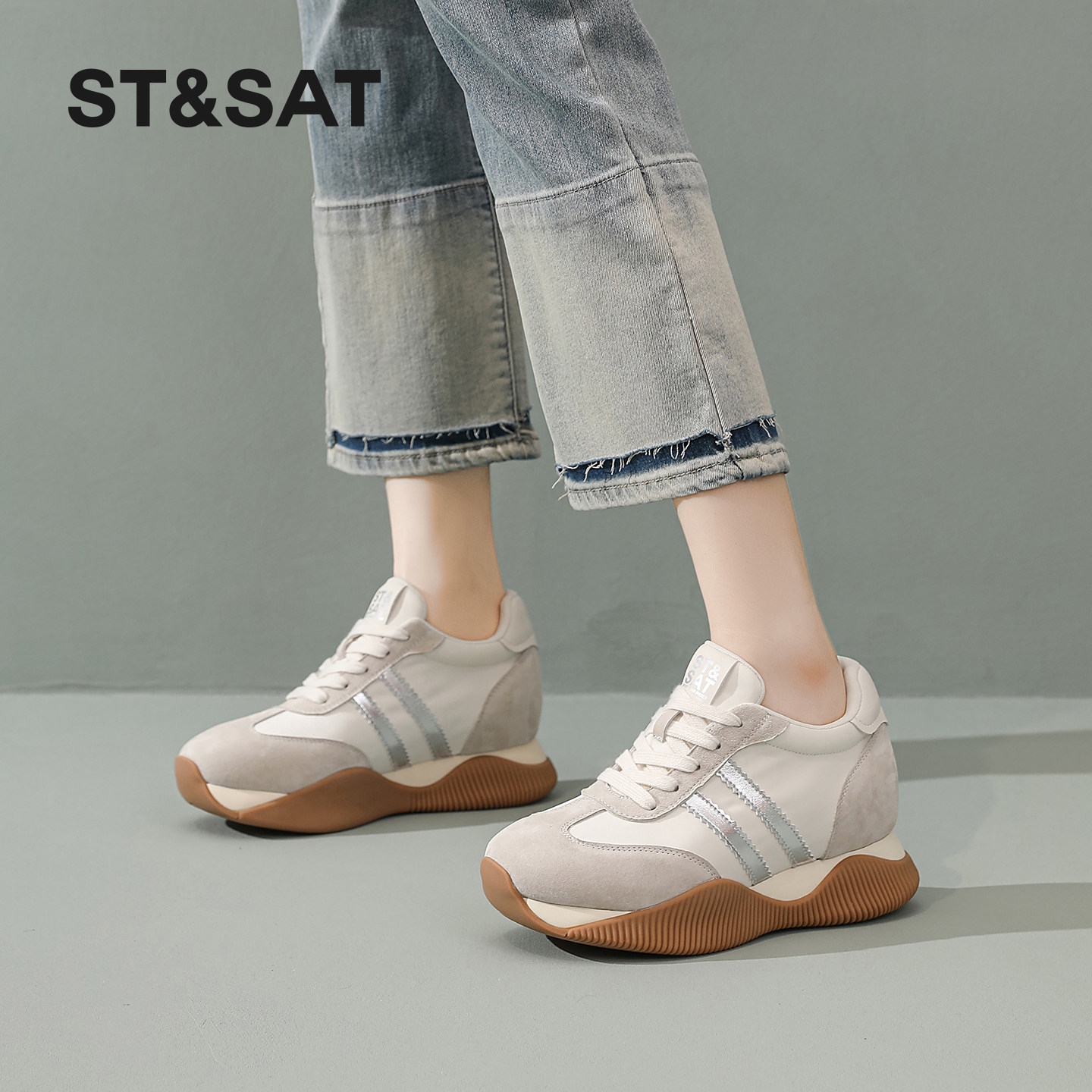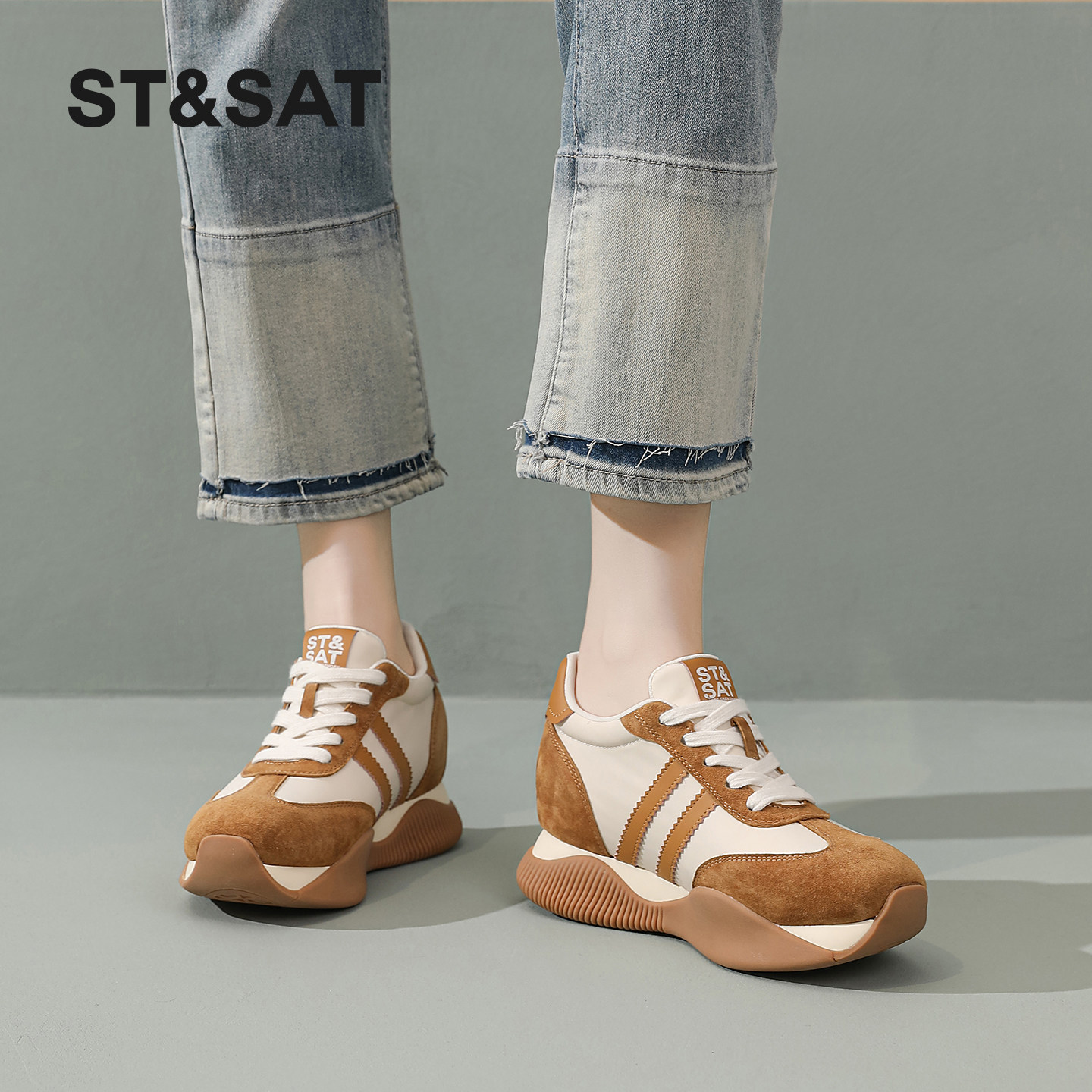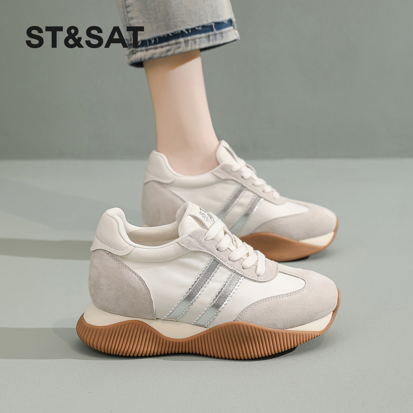 运动休闲鞋 St&Sat 百搭复古阿甘鞋 女春季 星期六内增高厚底德训鞋