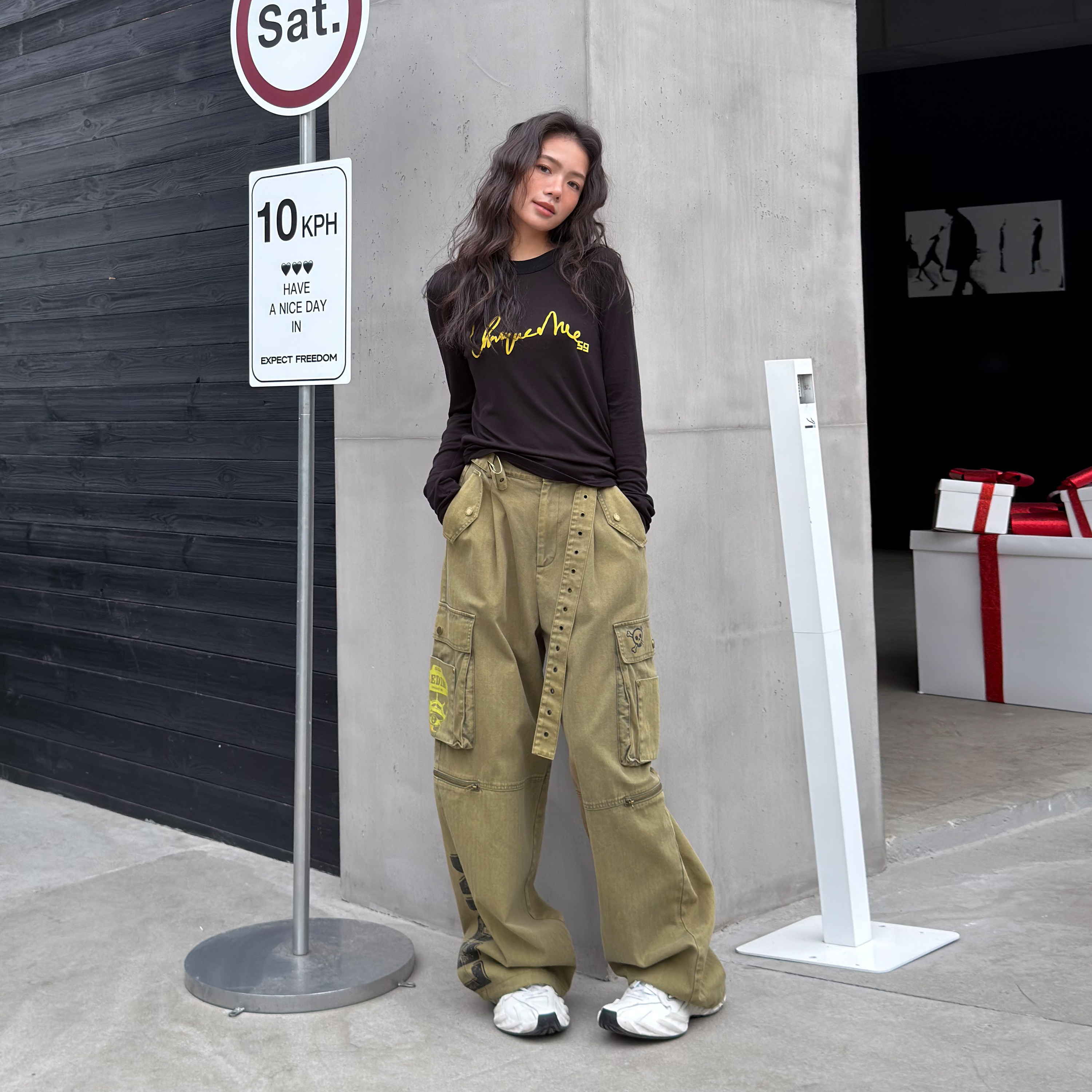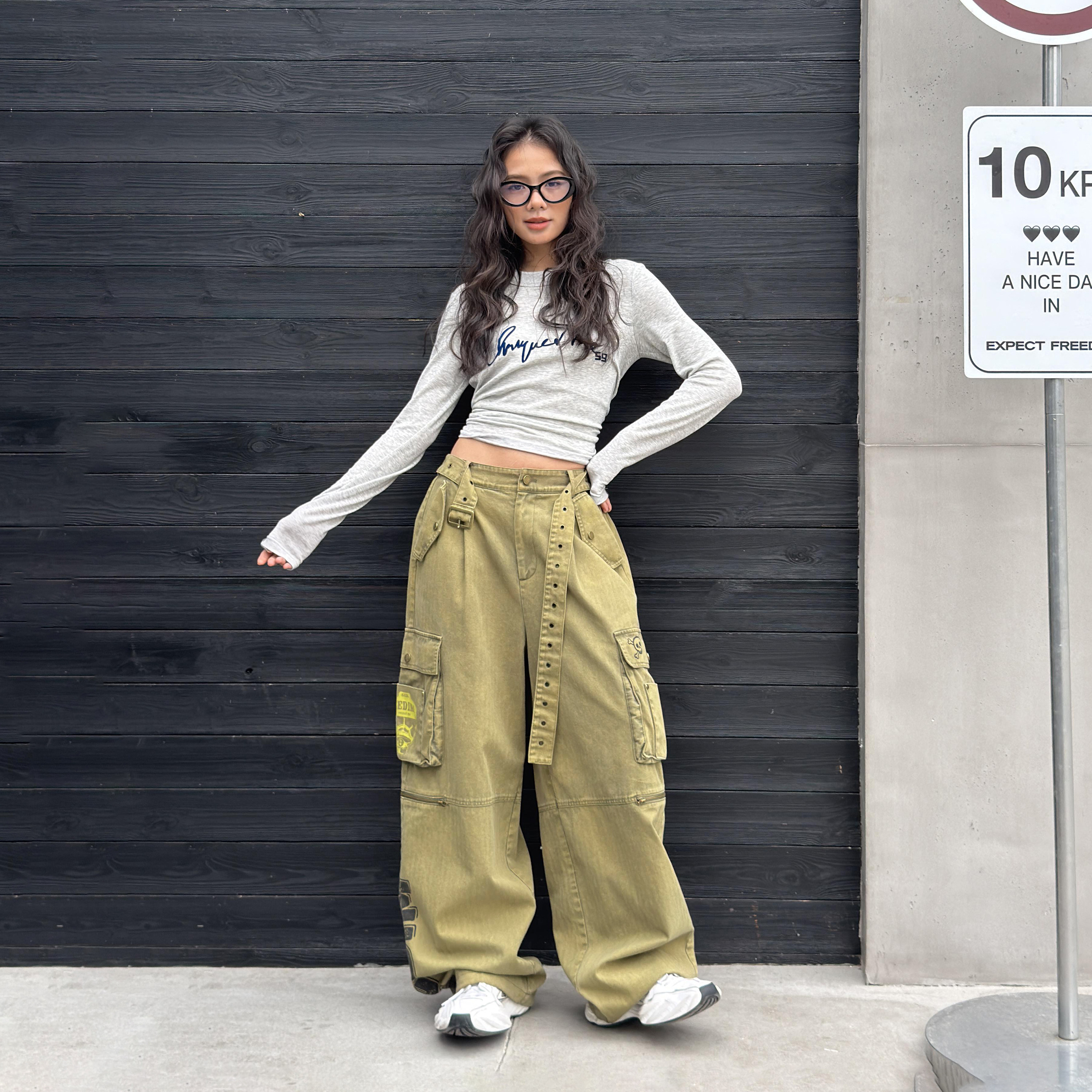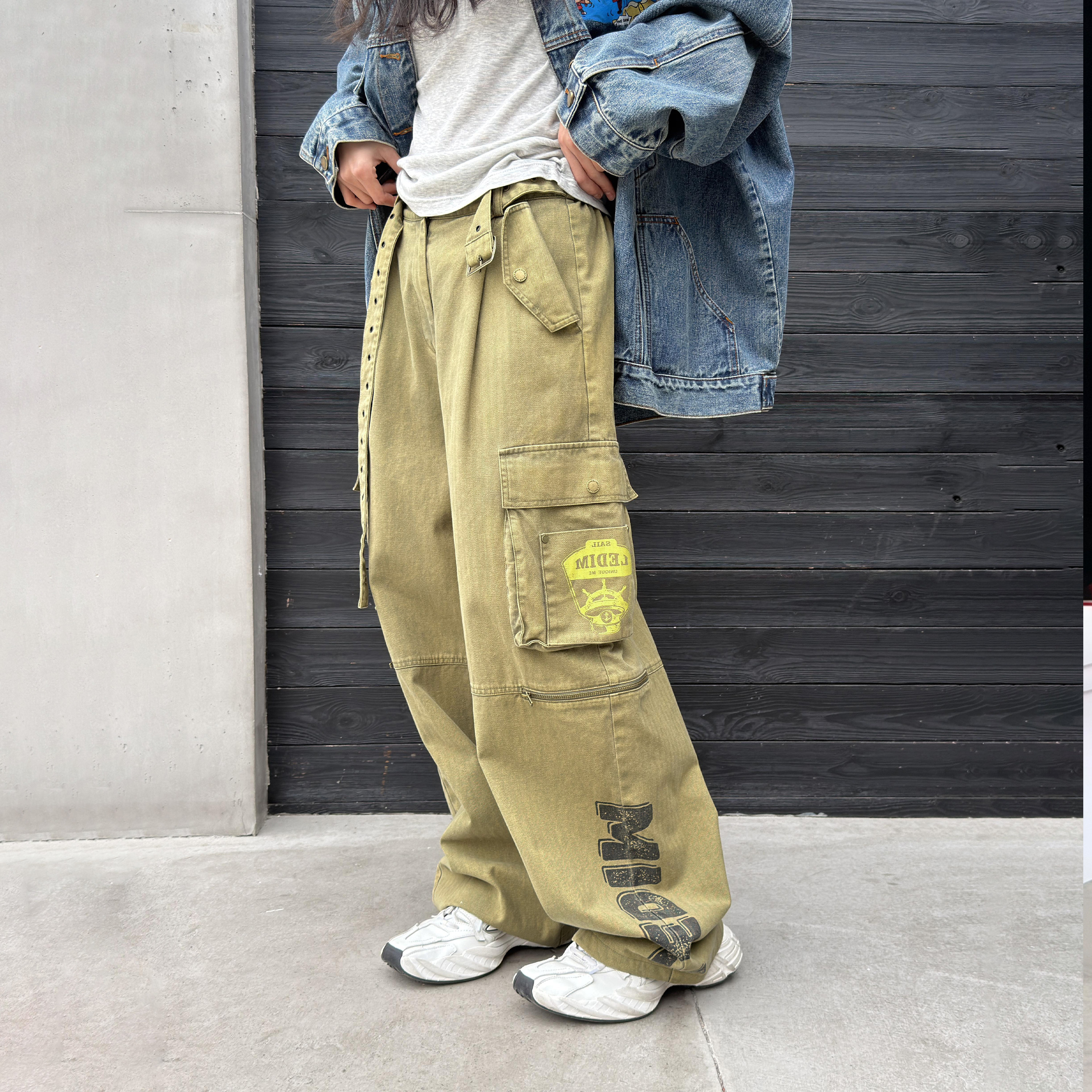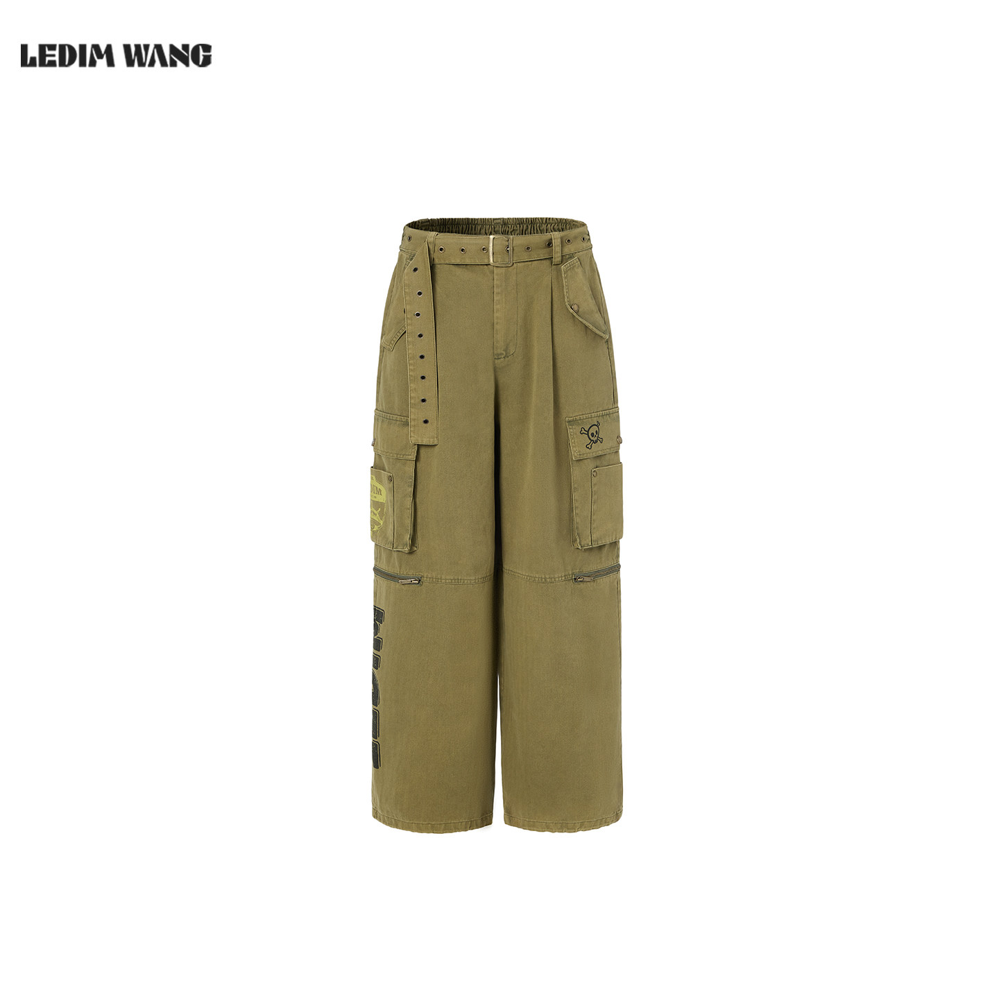 WANG复古印花休闲裤 裤 女森林绿宽松2026春季 阔腿工装 新款 LEDIM