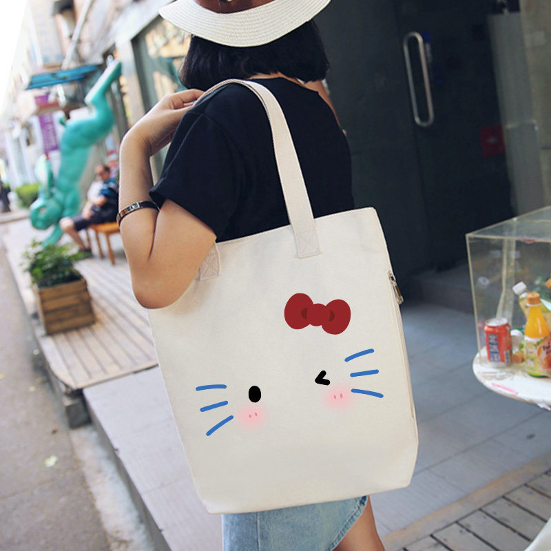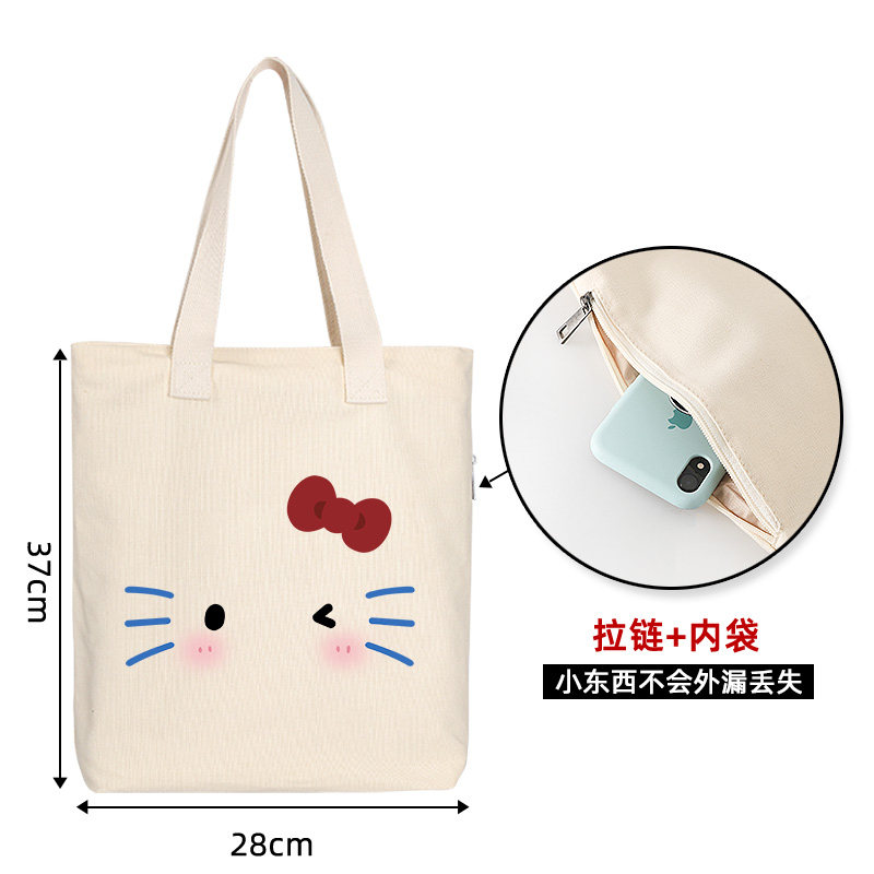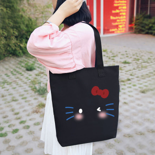 可爱kitty手提袋大容量托特时尚 卡通包女可爱百搭帆布包单肩通勤