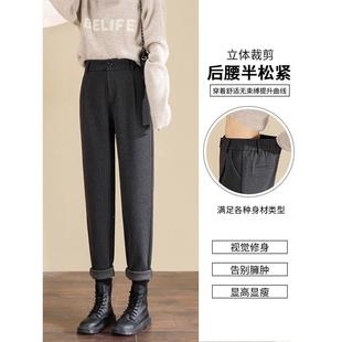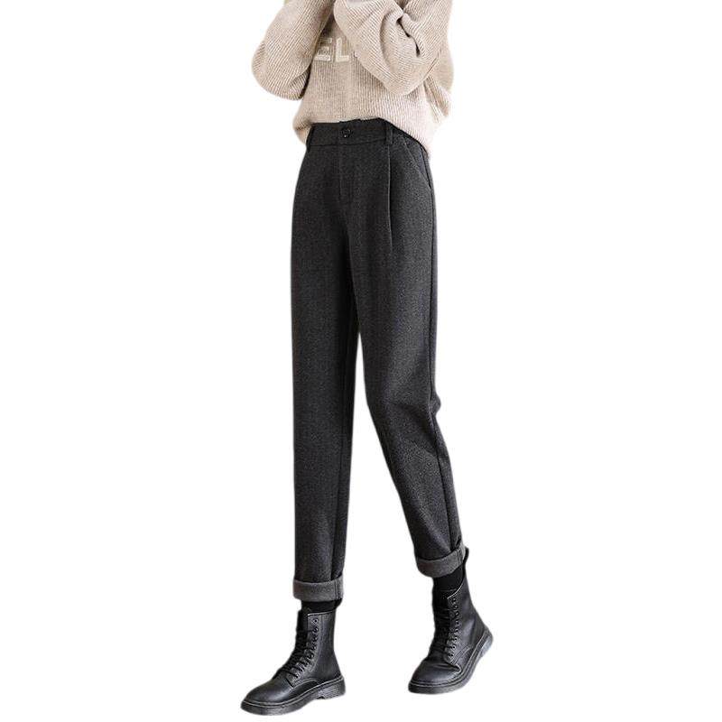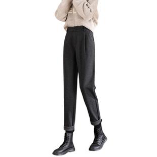 裤 子九分烟管裤 女秋冬新款 梨型身材配马丁靴裤 哈伦裤 灰色毛呢西装