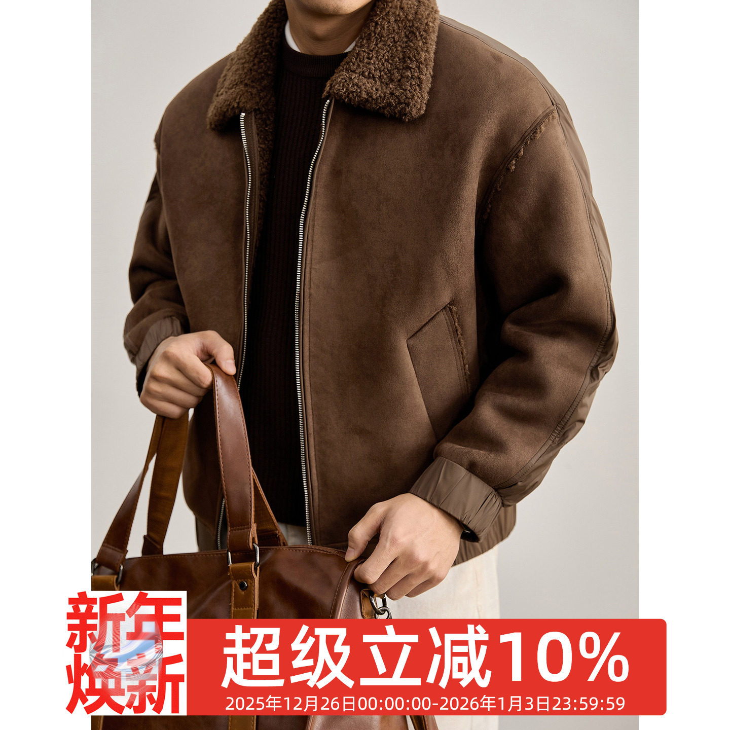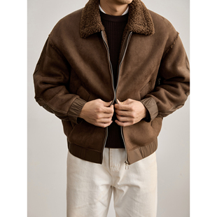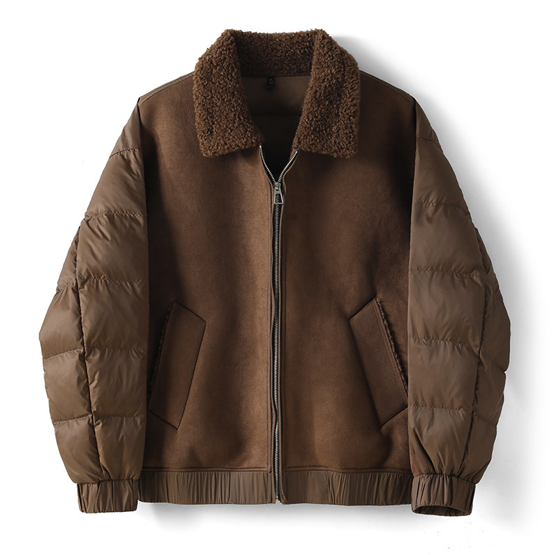 LUUD 三合一拼料设计麂皮绒拼接棉服外套保暖羊羔毛翻领夹克男冬