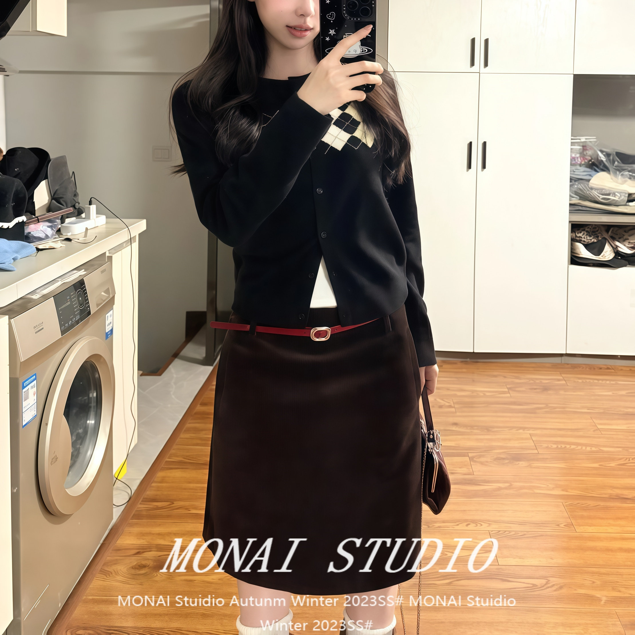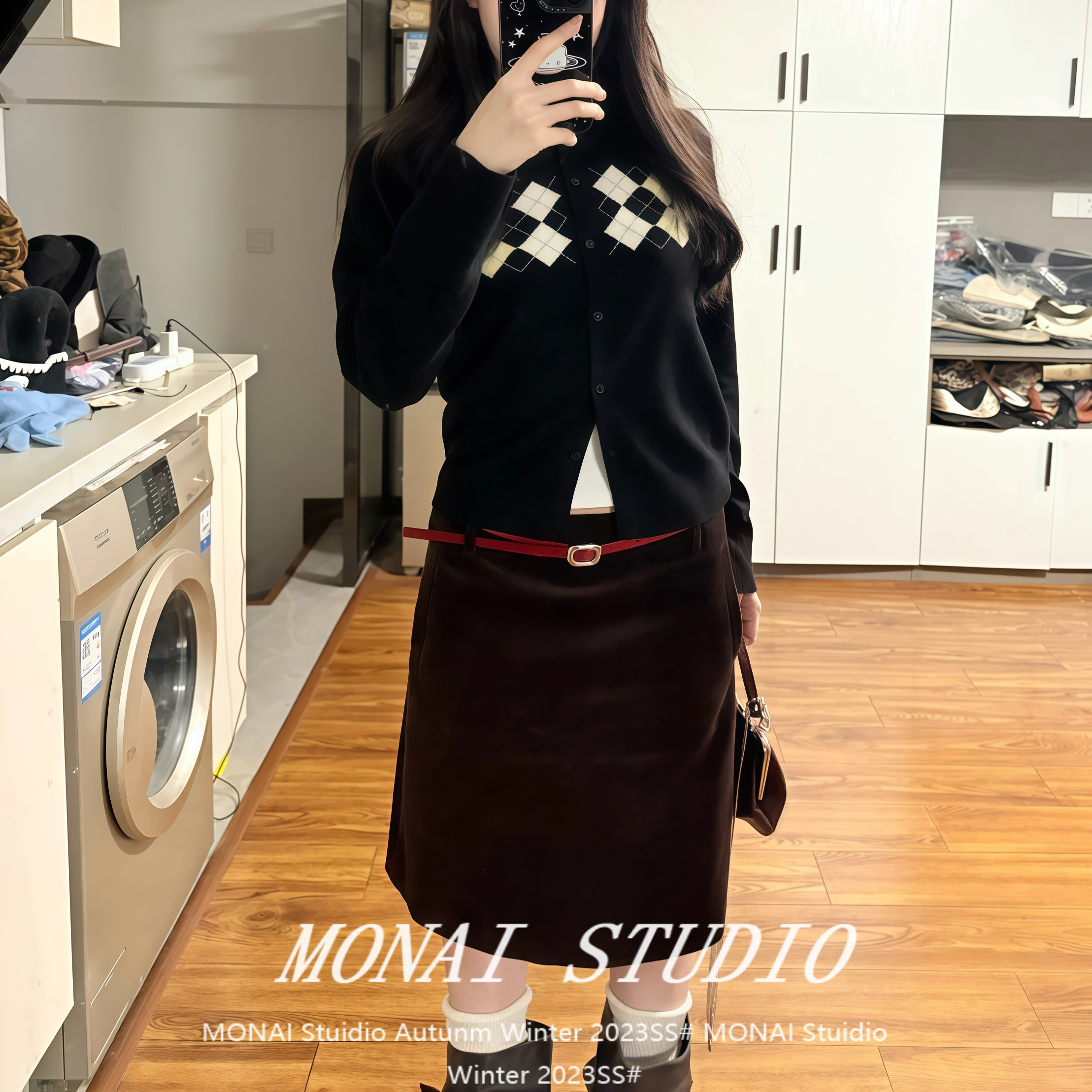 复古高级感黑色菱格针织开衫 法式 Metro 毛衣女秋冬上衣 Ni8ht