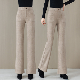 羊毛呢微喇裤 女秋冬2024新高腰宽松显瘦垂感小个子毛呢休闲喇叭裤