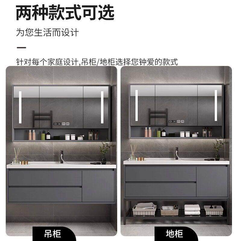 实木浴室柜陶瓷一体盆卫生间智能组合镜柜洗脸洗手池洗漱台落地柜
