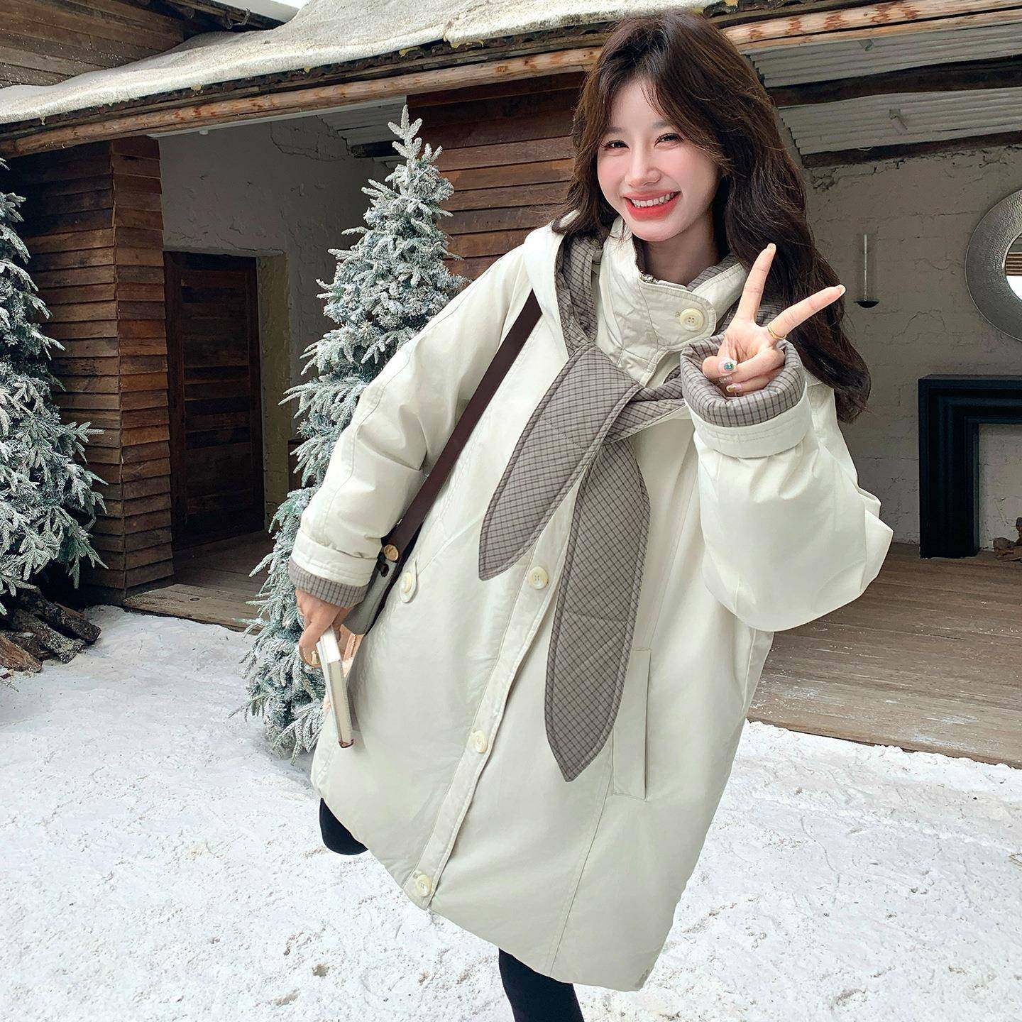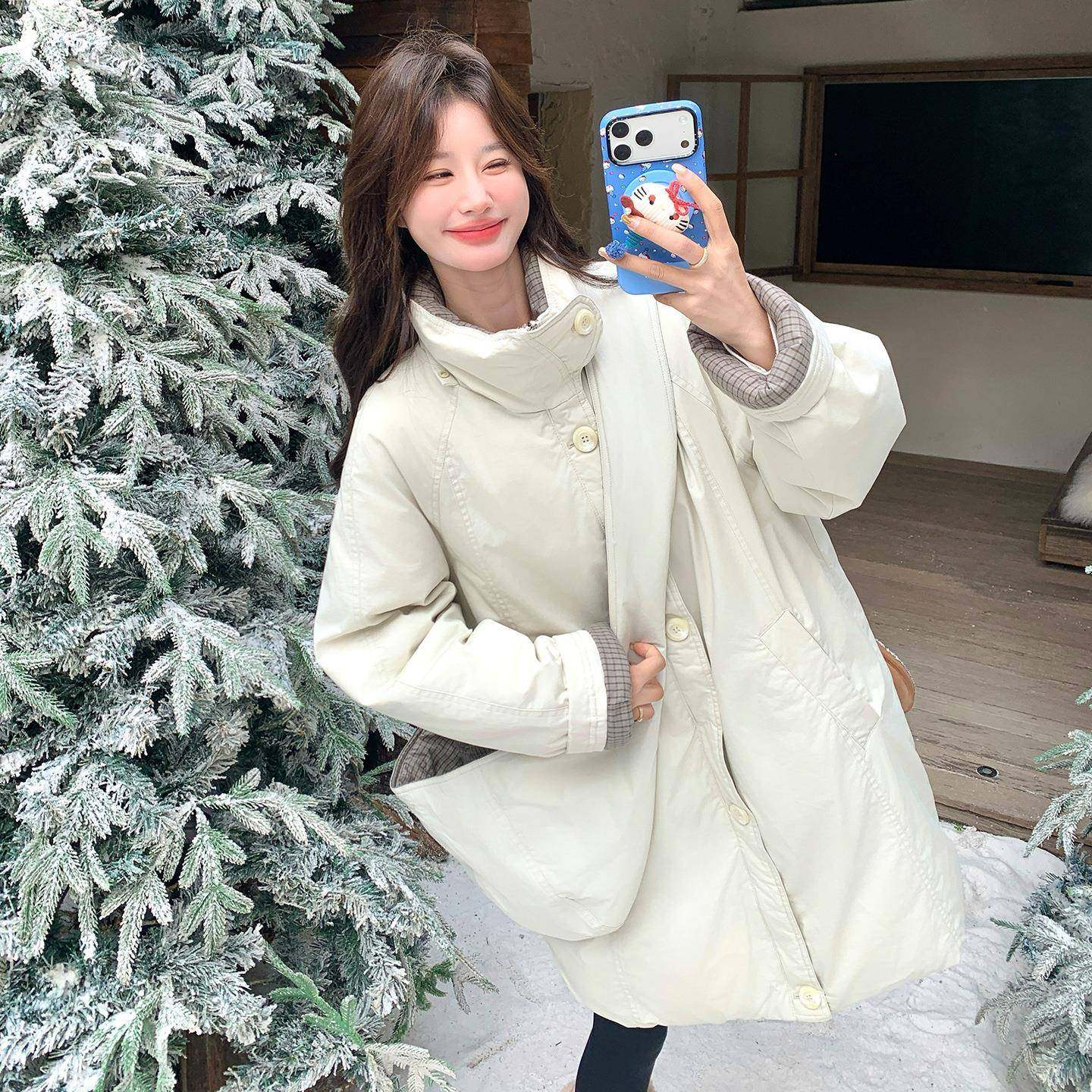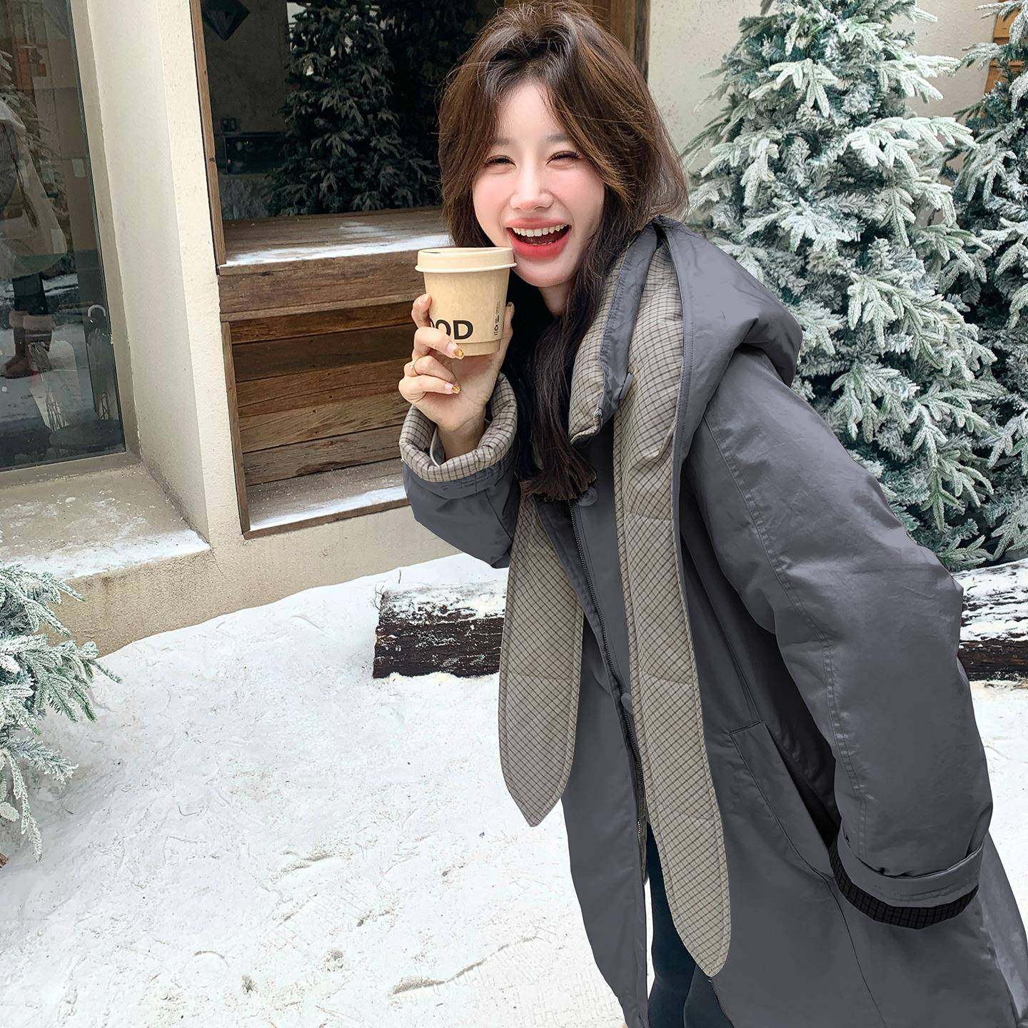 季 韩版 连帽B220 冬新加款 宽松厚绒外 880绒服女中长款 米白色工羽装