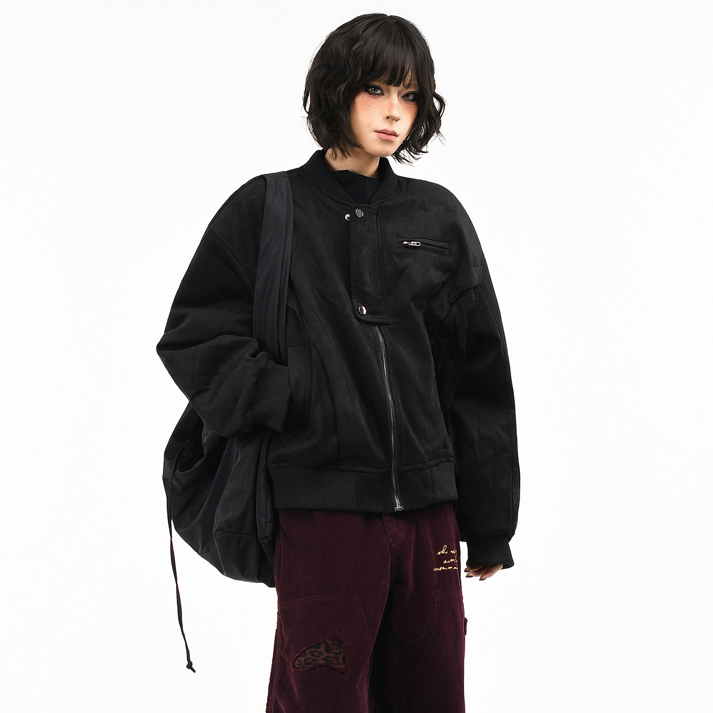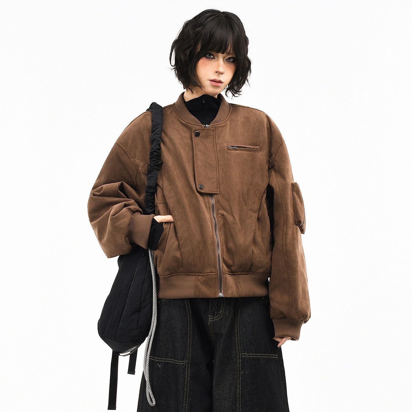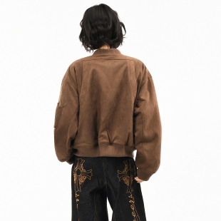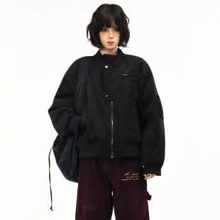 飞行保暖棉衣潮 宽松短款 OV原创美式 复古麂皮绒棒球棉服外套女冬季
