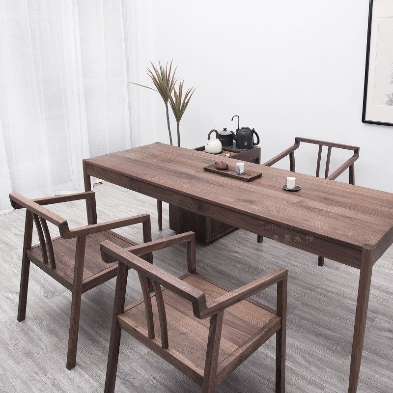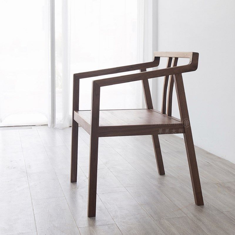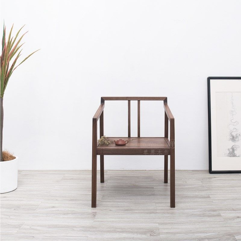 黑胡桃茶椅子单椅实木新中式 休闲椅现代简约餐凳禅意太师椅客椅