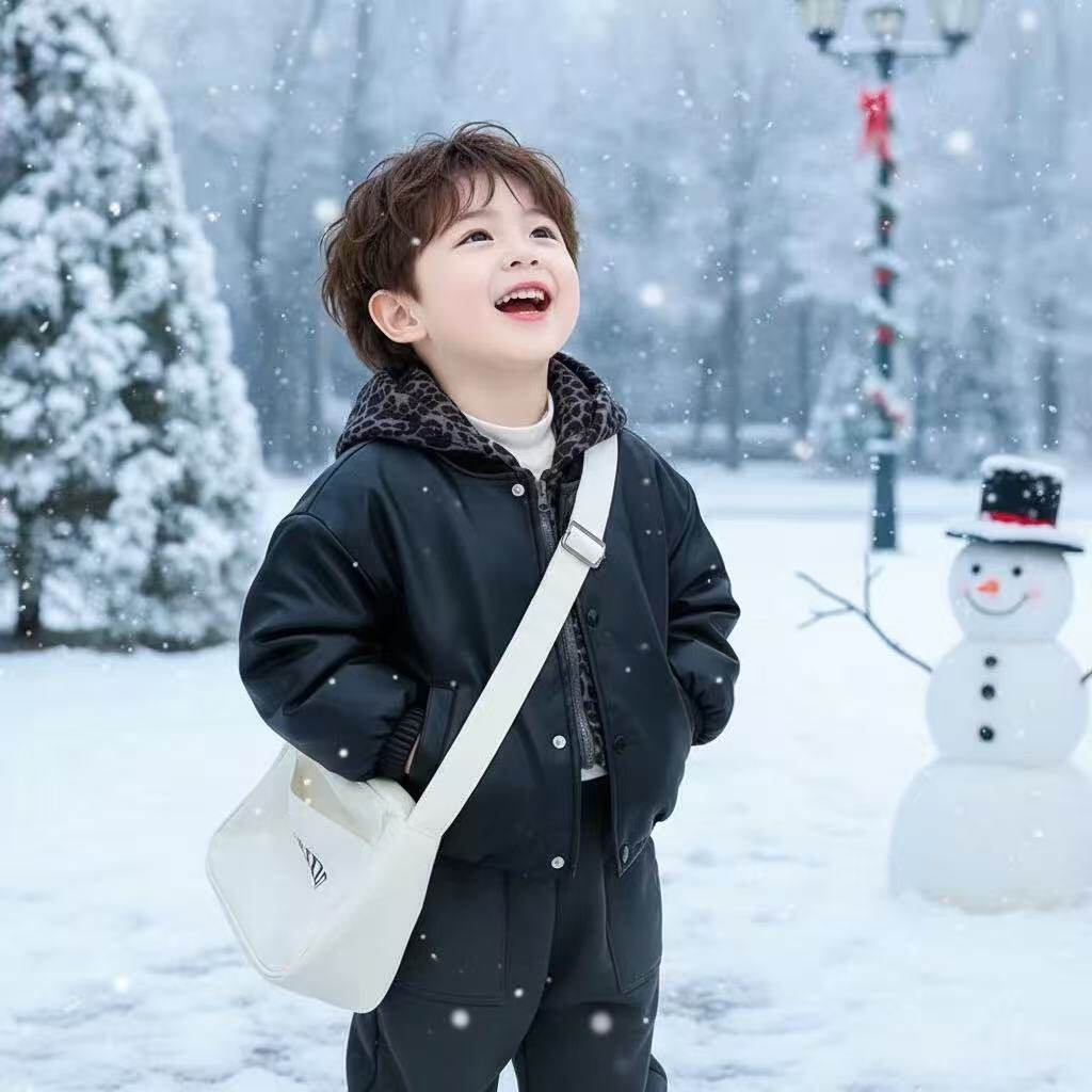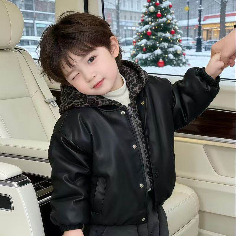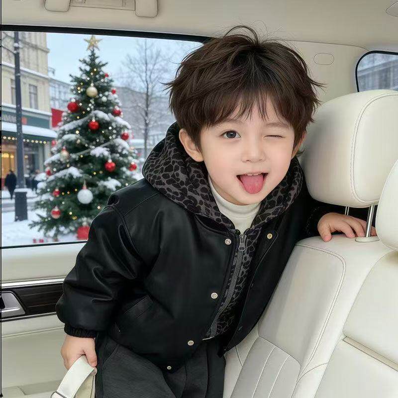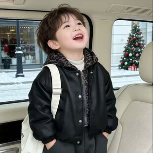 中小童加绒潮酷街头机车夹克衫 皮衣外套2026新款 时尚 男童秋冬韩版