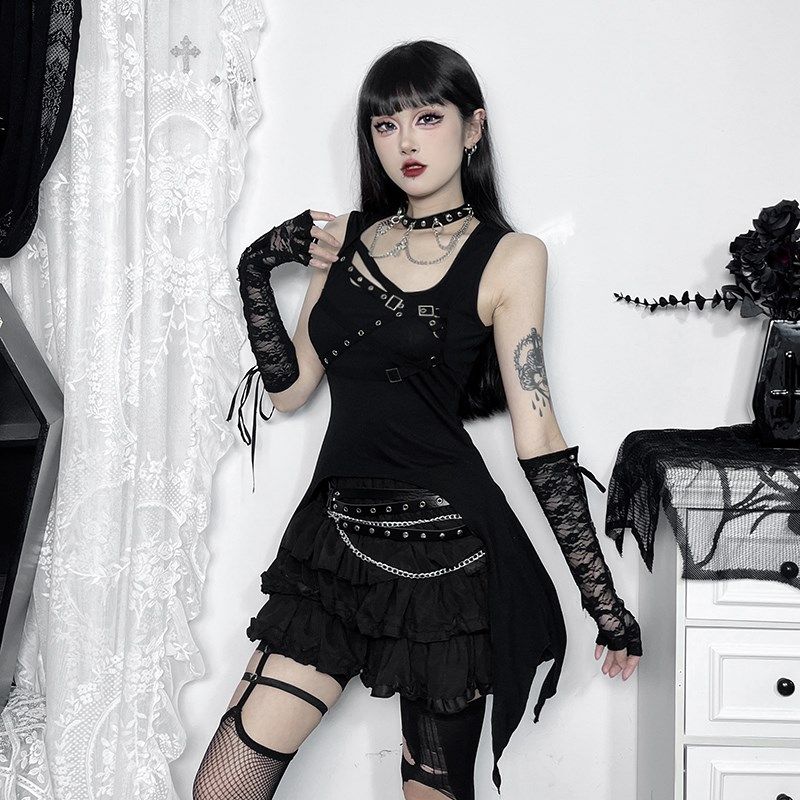 速发wa上this 哥特打歌服背a亚文化电音节穿搭y2k黑色辣妹心衣