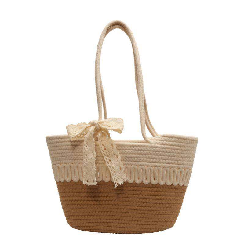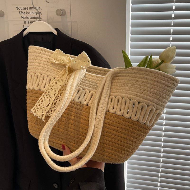 慵懒田园风草包编织包网红彩色草编高端夏日海边度假手提大托特包
