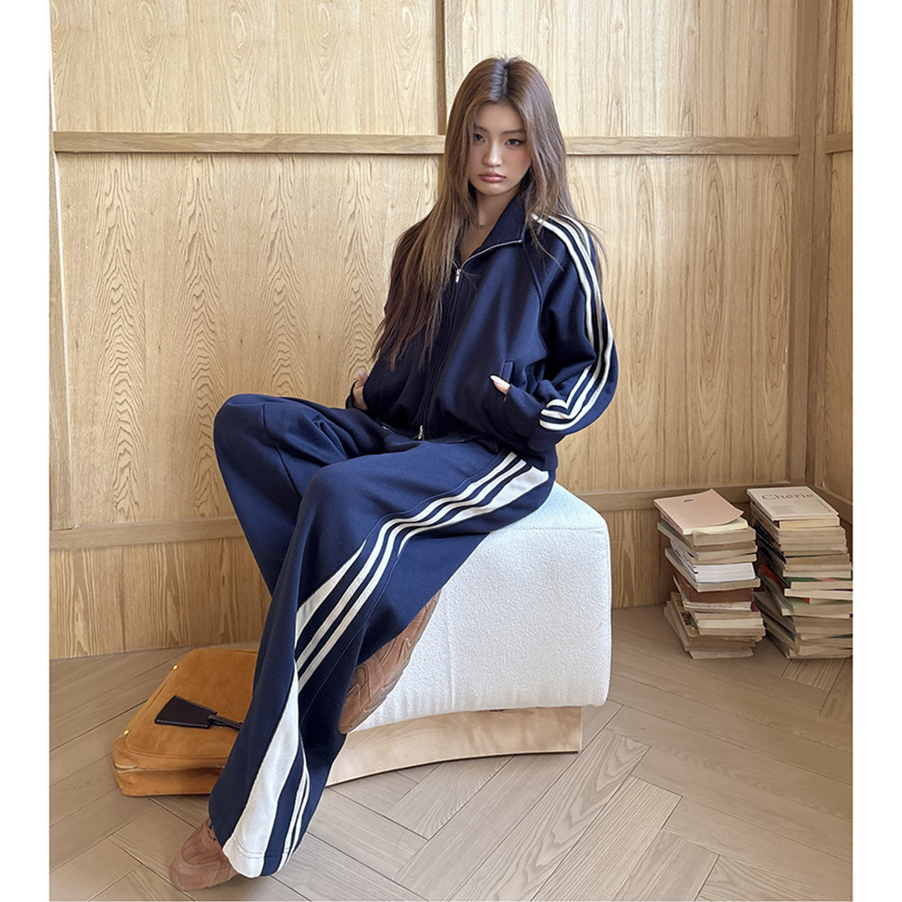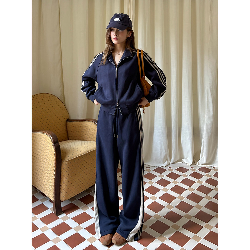 女外套上衣休闲微喇阔腿裤 两件套装 加绒学院时尚 实拍2025秋冬新款