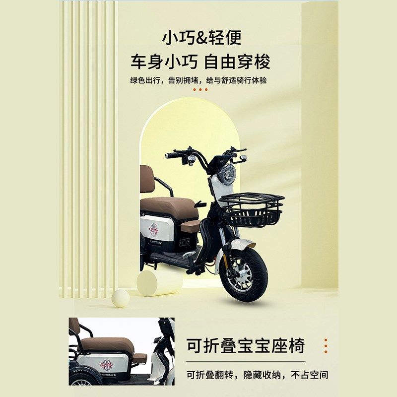 促销 家用小型电动三轮车女士接送孩子电瓶车老人亲子折叠代步车