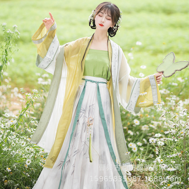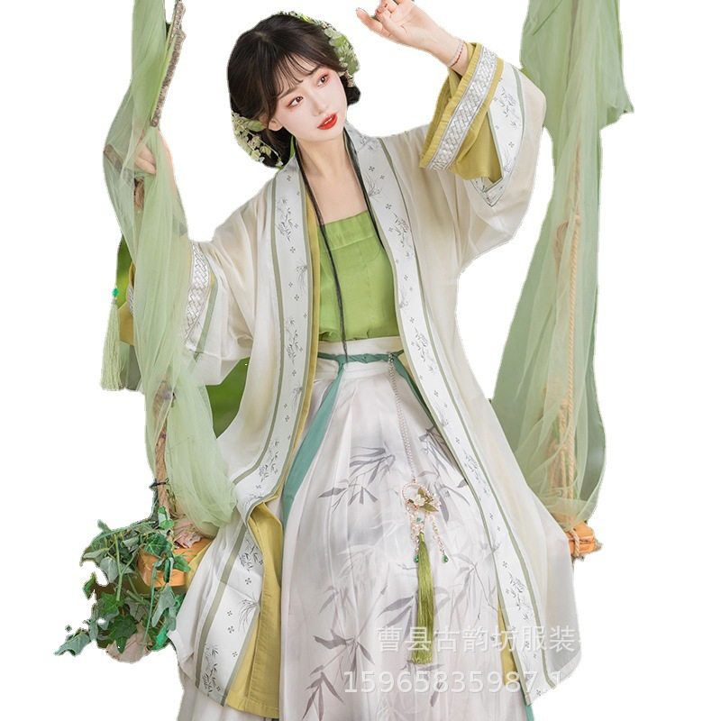 九华瑶原创汉服女中国风对襟宋制四件套齐腰襦裙超仙飘逸夏季