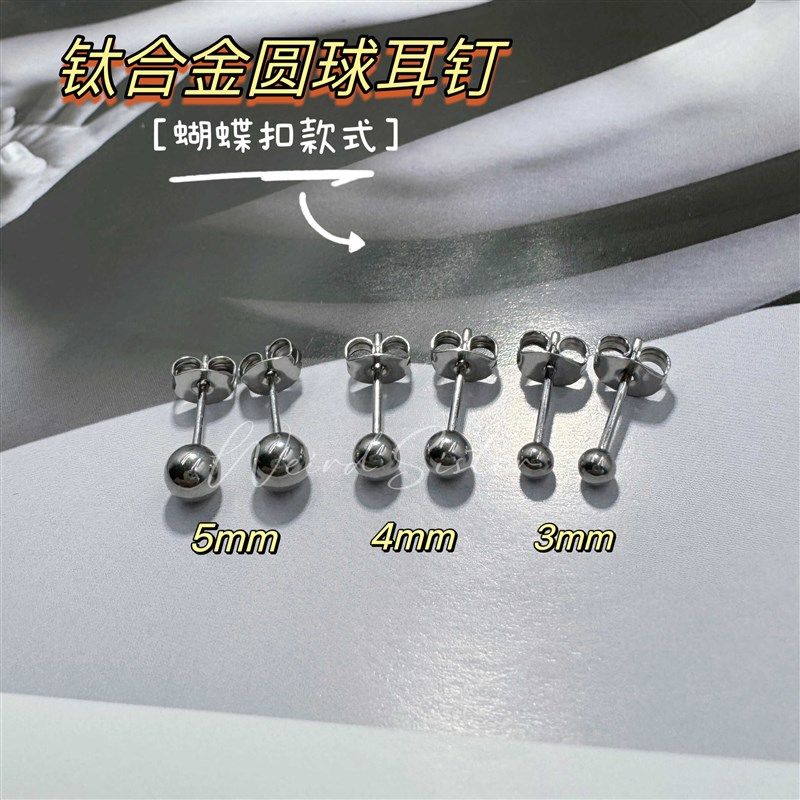 F136钛合金耳钉0.8MM可前插圆球款 蝴蝶扣防过敏耳垂钉耳骨钉