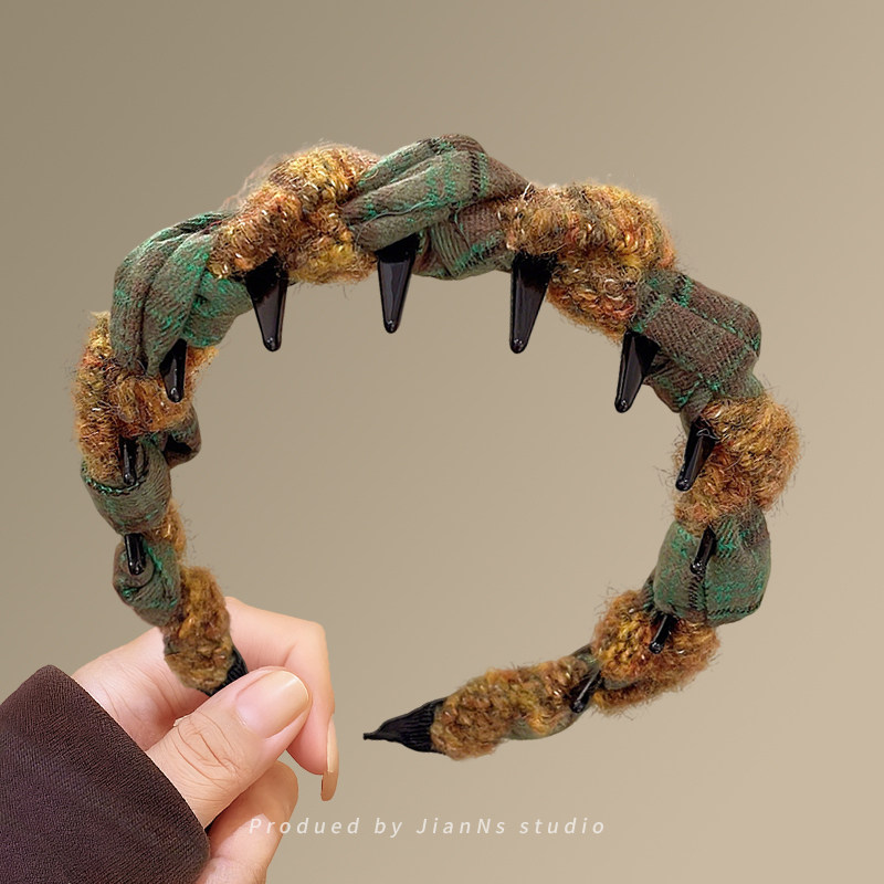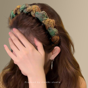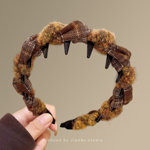 复古拼色毛呢齿梳发箍女2026新款 高颅顶日常外戴头箍洗脸发卡头饰