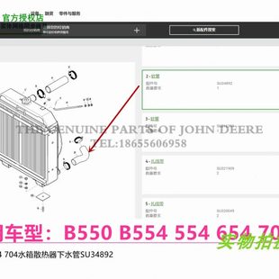 SU34892约翰迪尔B554 654散热器700水箱下水管拖拉机原厂配件 704