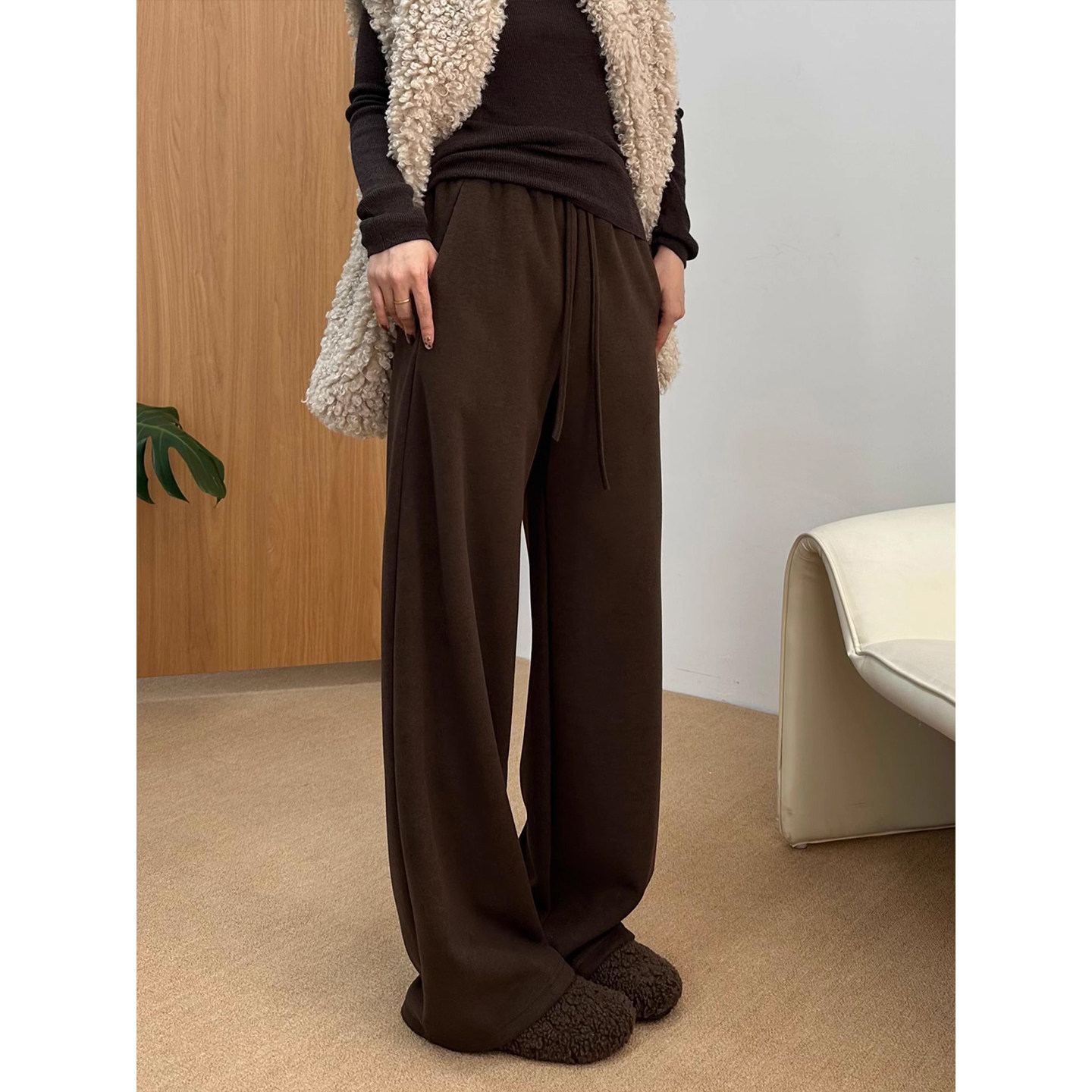 孕期不勒肚子阔腿长裤 加绒加厚2025新款 子秋冬季 无托腹孕妇喇叭裤
