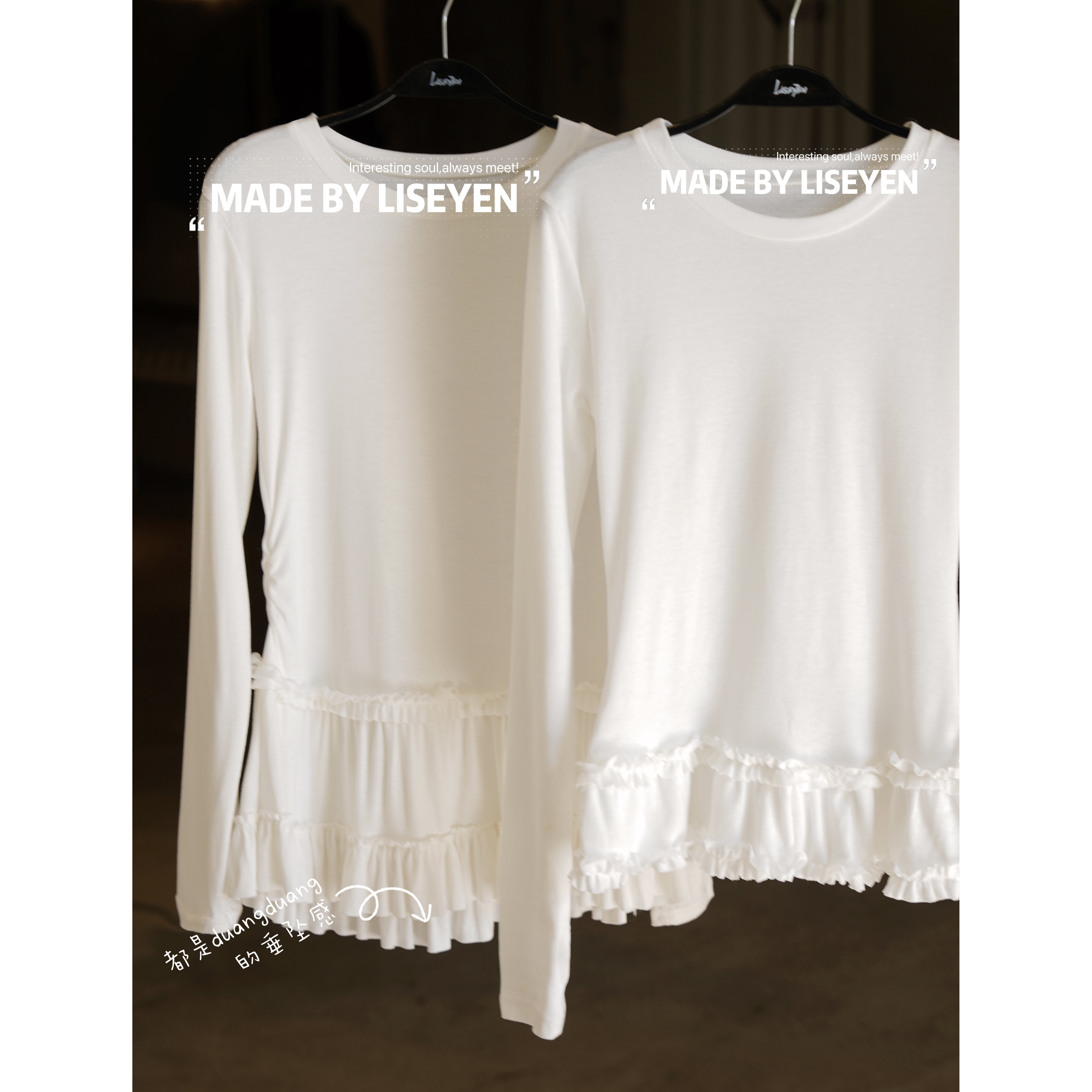 本 本荷叶边内搭T恤女上衣…新出加长宽松版 LISEYEN设计师款 新版