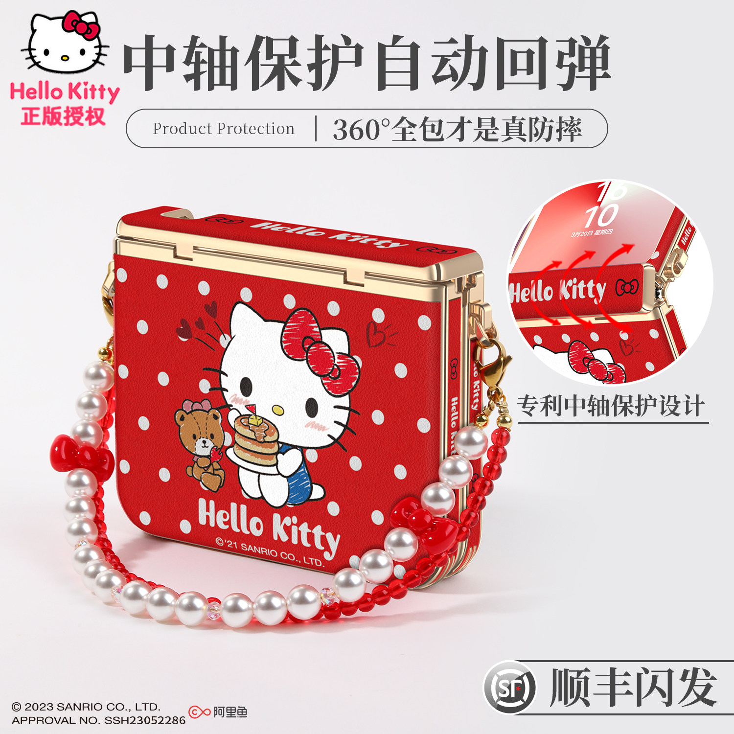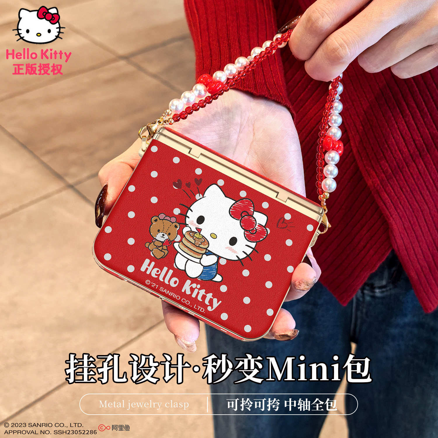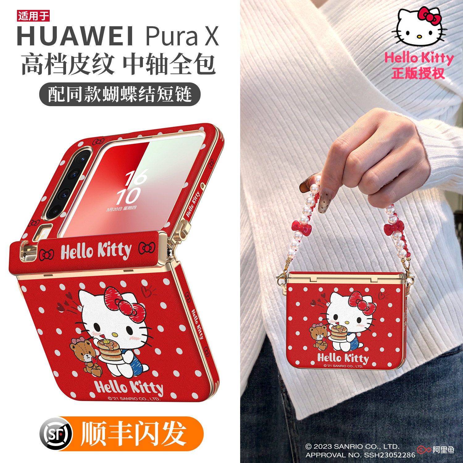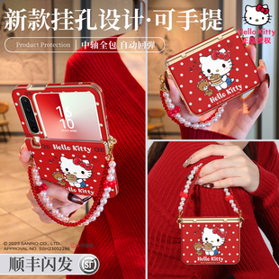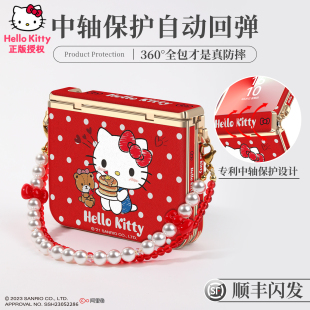 x折叠屏带挂绳红色手提可爱凯蒂猫素皮中轴全包保护套新年 pura典藏版 Hellokitty正版 适用华为purax手机壳新款