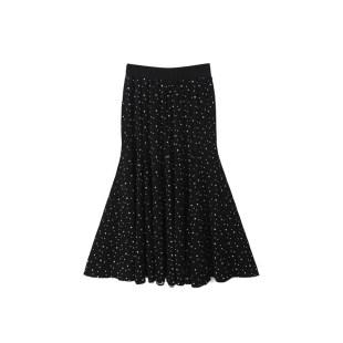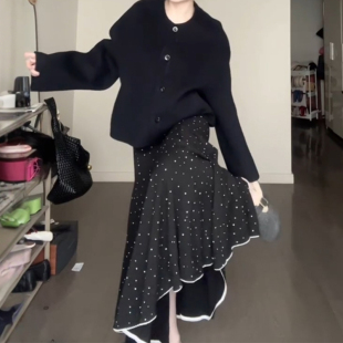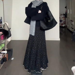 黑色超好看冬装 胖mm显瘦波点鱼尾长裙梨形伯克利裙子 半身裙女大码