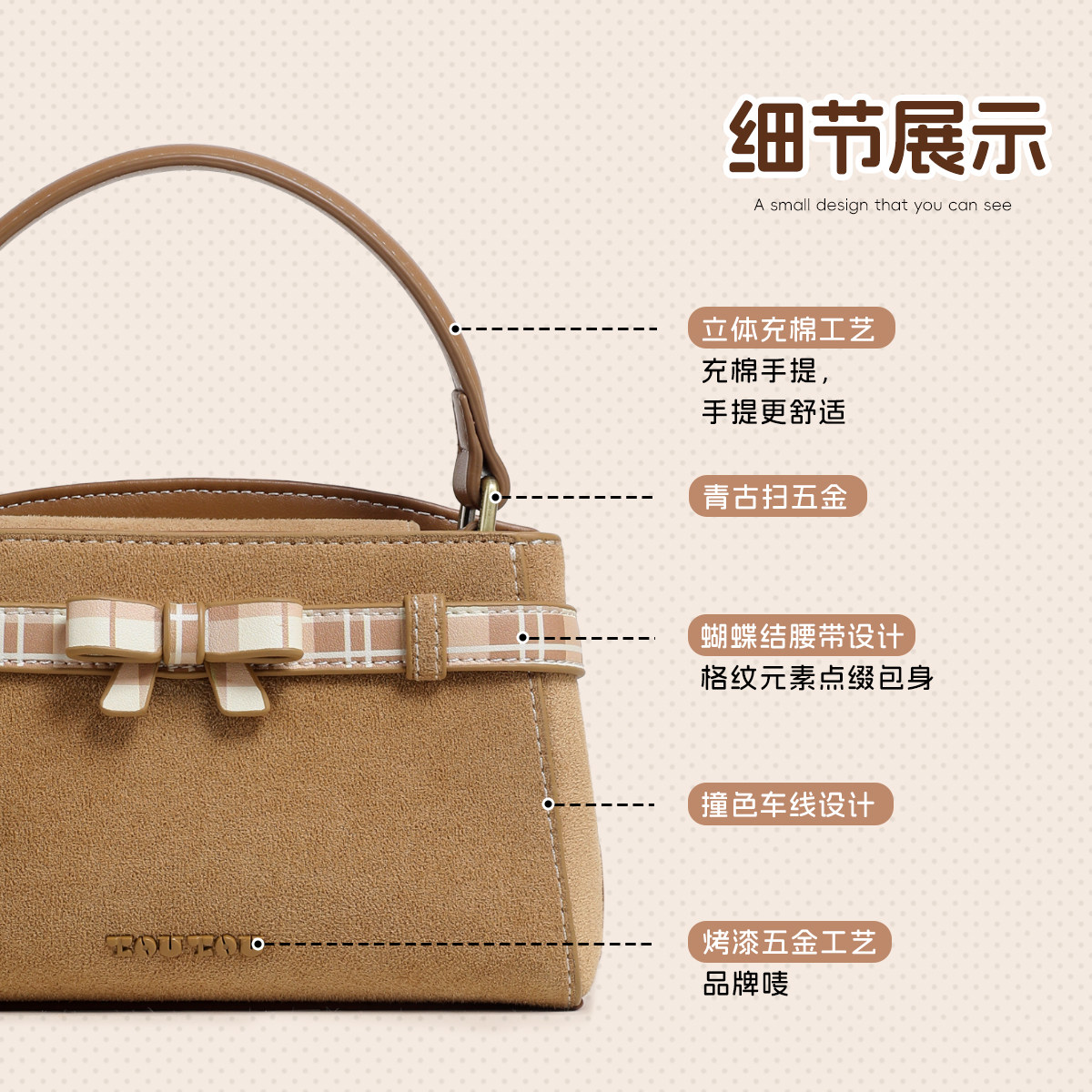 新年跨年礼物TOUTOU麂皮星星凯莉包高级感手提包通勤单肩斜挎包女