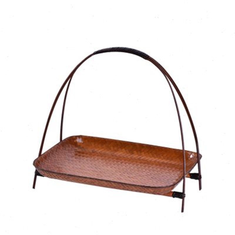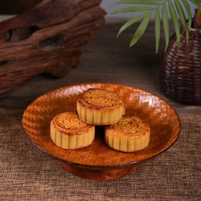 中式 手工编织果盘藤编圆形水果盘篮防水干果托盘收纳竹雕竹编制品