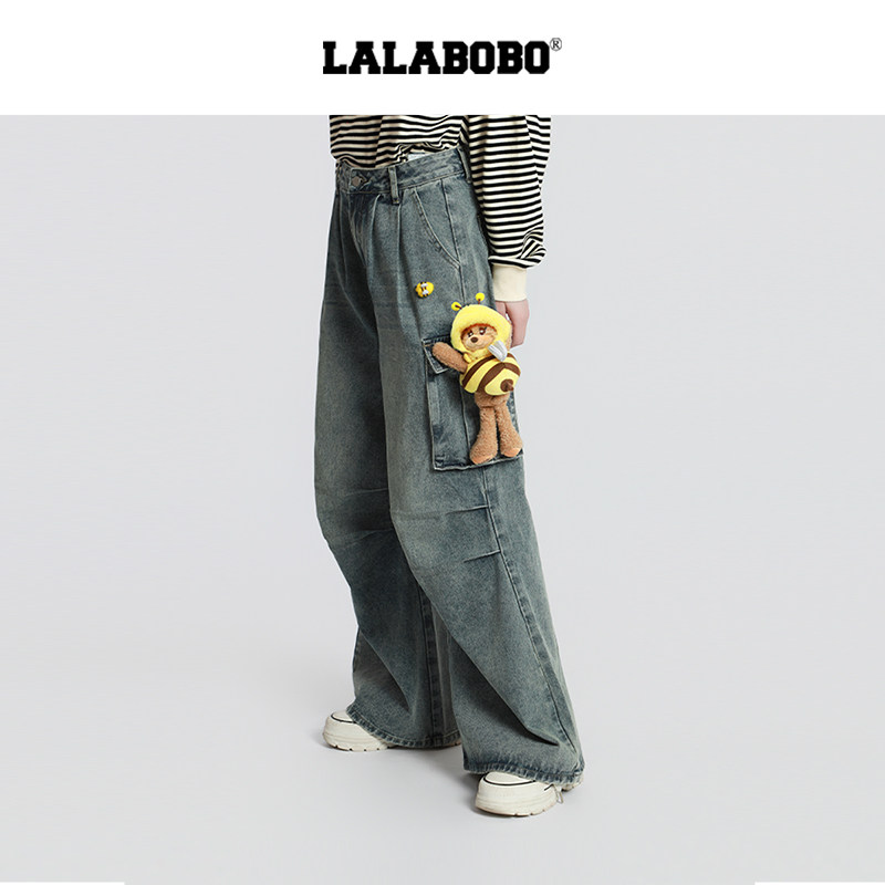 水洗牛仔裤 子直筒休闲裤 男秋冬款 宽松阔腿裤 子 美式 @港仔文艺男